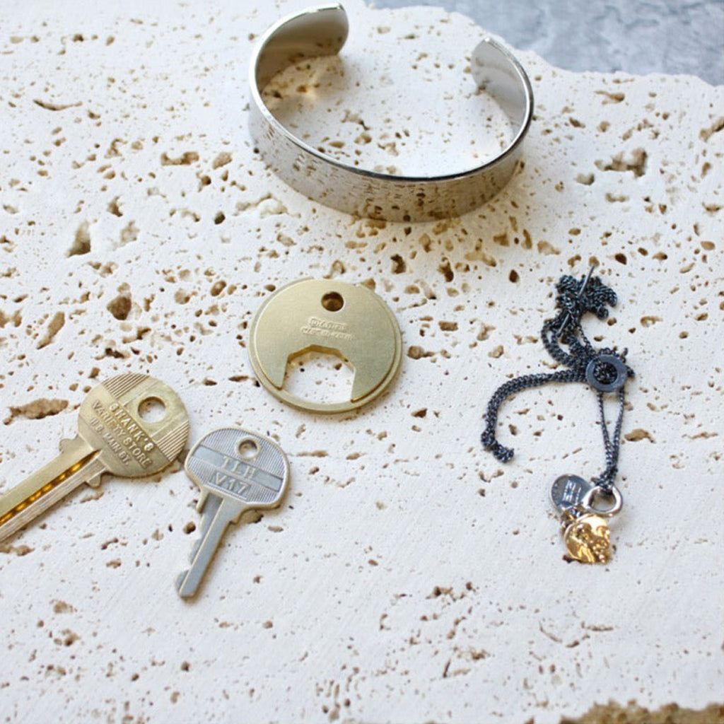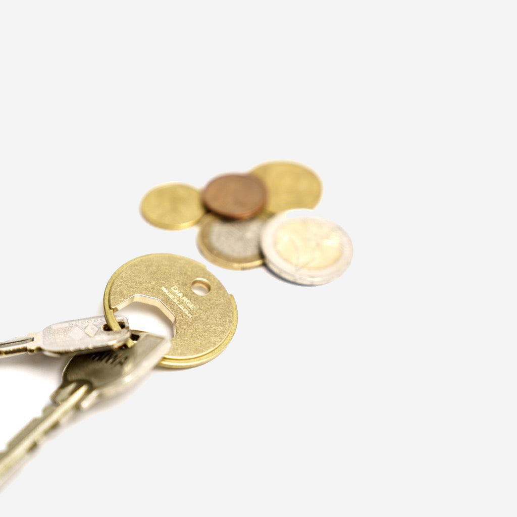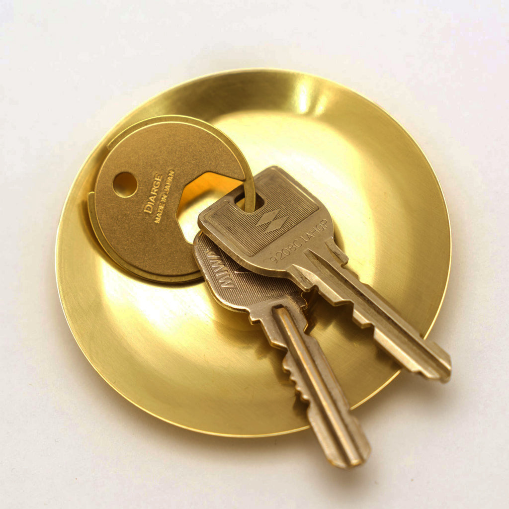Made from solid brass, manufactured mostly by hand and incorporating techniques handed down through the ages. Diarge Gold Circle Disc Keyring is a simple key holder that combines a disk-shaped plate and a ring. You can remove the key by rotating the ring and aligning the D-shaped notch on the body with the cut part of the ring. Each holder can store up to 10 keys, making it the perfect item for compactly storing multiple keys. Both a beautiful gift or an item of your own to treasure.