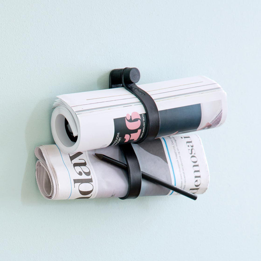 The Double Loop is a wall mounted hook with multi-loops in leather and oak, designed to happily hold onto a variety of your belongings until you need them, whether it be a tea towel, newspaper, sunglasses or some important papers.