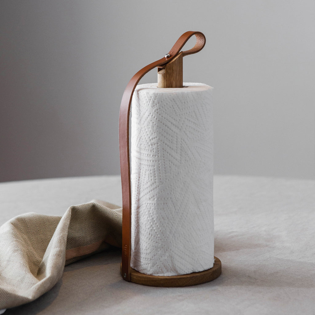 Ekta's Hands On is a stylish and practical kitchen paper-towel holder in sustainable oak and leather. It fits kitchen paper rolls up to approximately 23 cm.