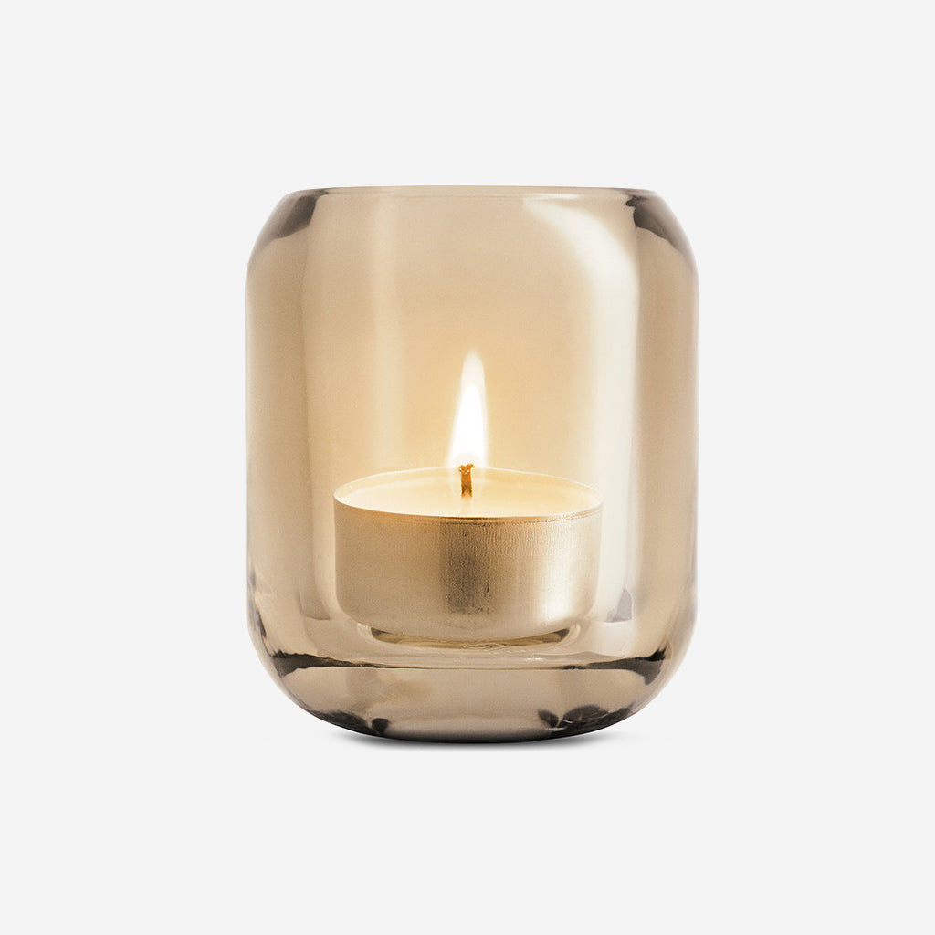 Decorative tealight holder in coloured sand amber glass. Beautifully reflects light and creates a cozy atmosphere in the home.