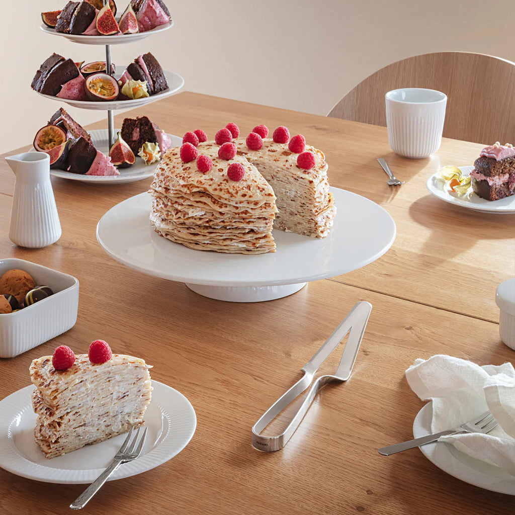Cut cake with an elegant bladed spade – the perfect wedding present and a stylish server for gateaux, tarts, pies, and pizza too. The server is forged from one single piece of steel with slicing blades on both sides and an elegant, comfort-grip handle. Easy-clean, dishwasher-safe.