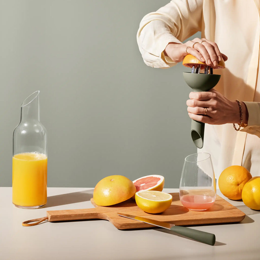 Enjoy the juice - and only the juice - of tasty citrus fruits with the Eva Solo Citrus Press. Gently turn the fruit against the core of the press, and allow the juice - sieved of pips - to run through the handle of the press, straight into a jug or glass. The handle acts as a funnel, making pressing fruits easy and minimising mess.