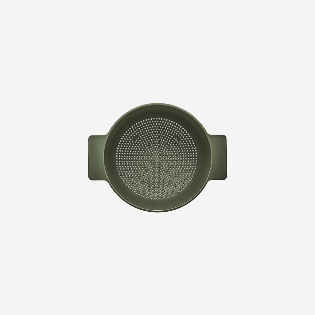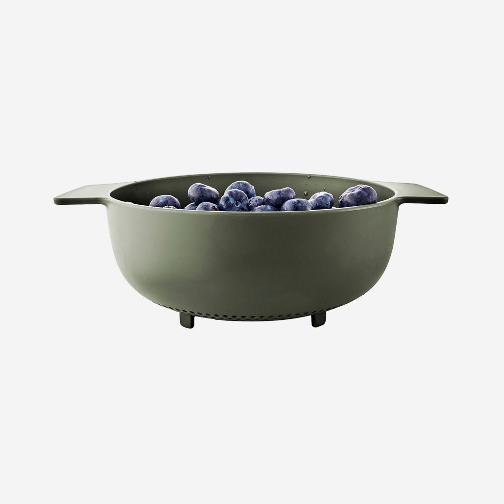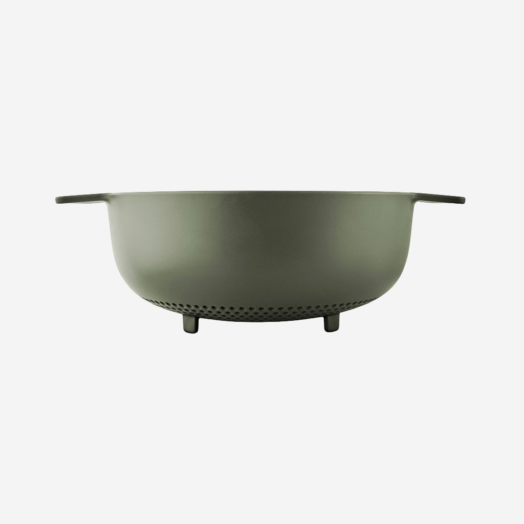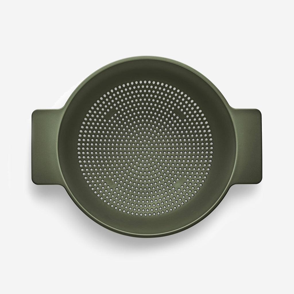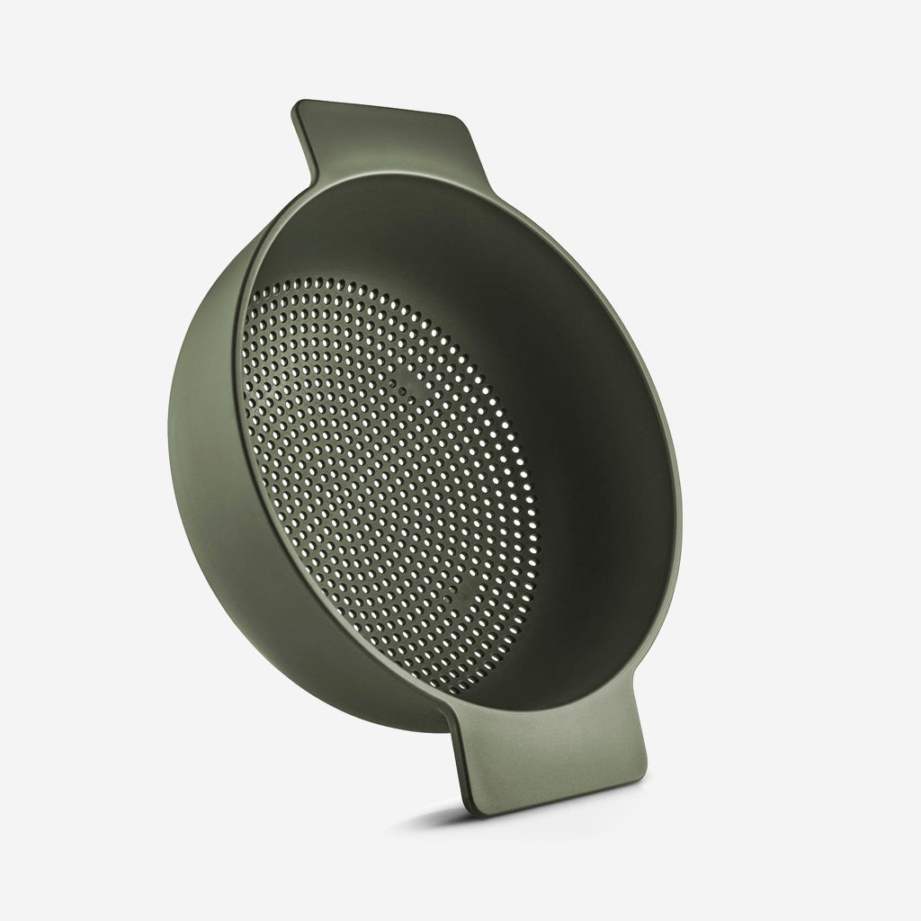 The Green tools Colander is used for rinsing fruit and vegetables or straining water from pasta and potatoes. The conical shape makes it easy to adjust the colander to both large and small cooking pots, while the ergonomic handles ensure safe, comfortable handling. Dishwasher-safe.