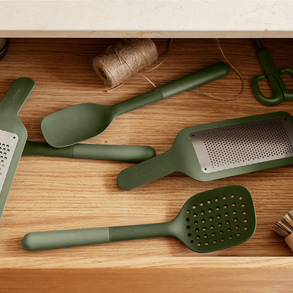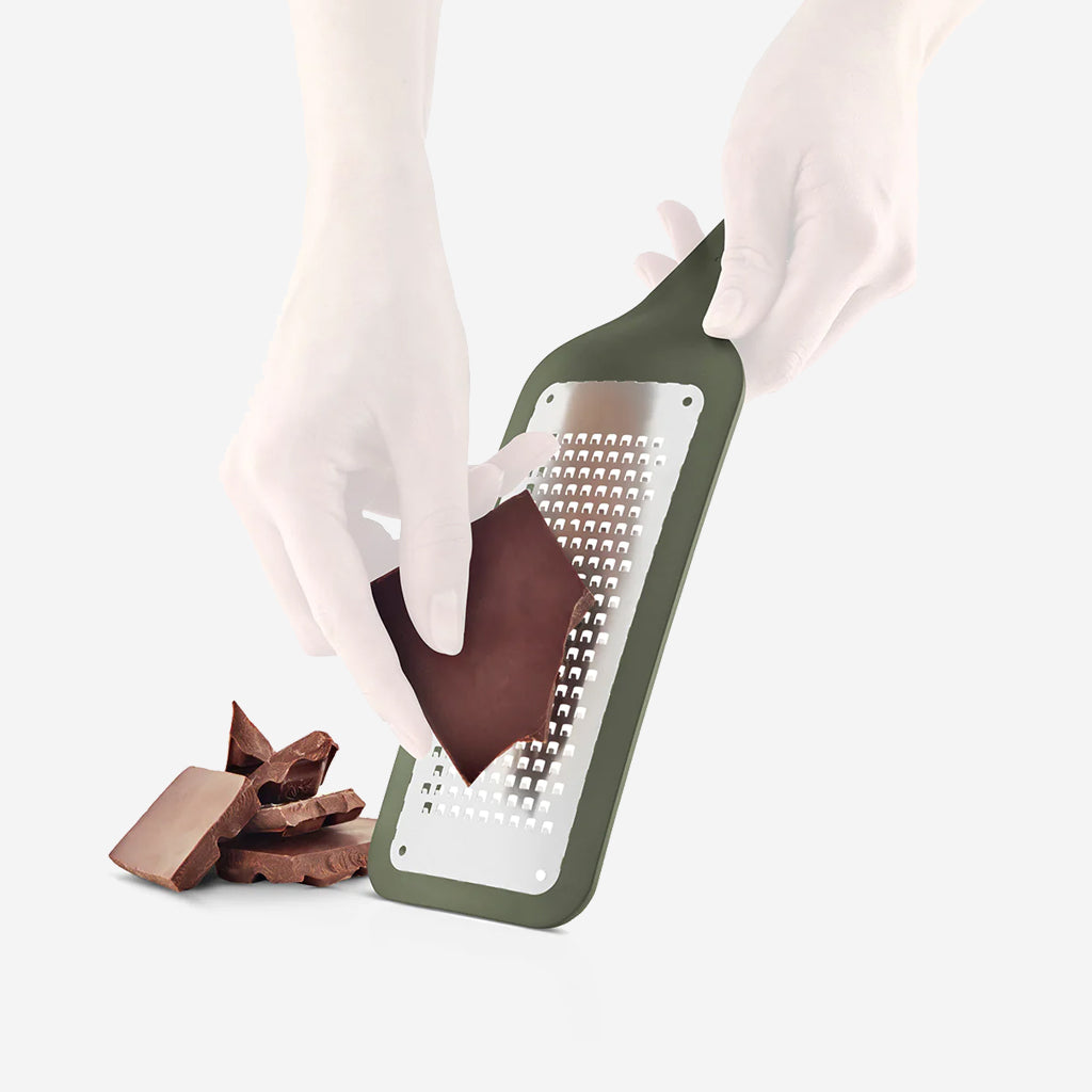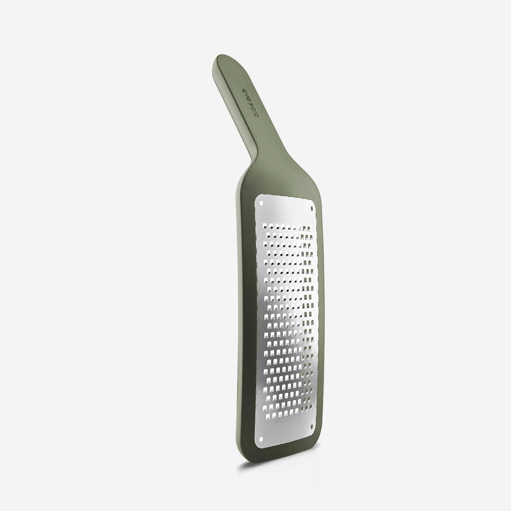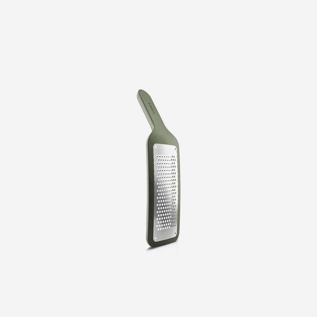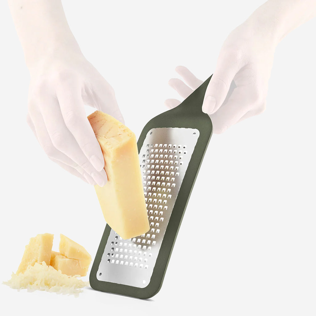 Easily grate and shred all kinds of delicious ingredients for meals using this functional grater. The grater has an anti-slip rubber base to keep it stably upright on your chopping board or kitchen counter, and is easy to use. This medium-fine grater is ideal for grating apples, carrots or potatoes for hash browns, and for hard cheeses, too. Firm-grip handle for user safety while grating.