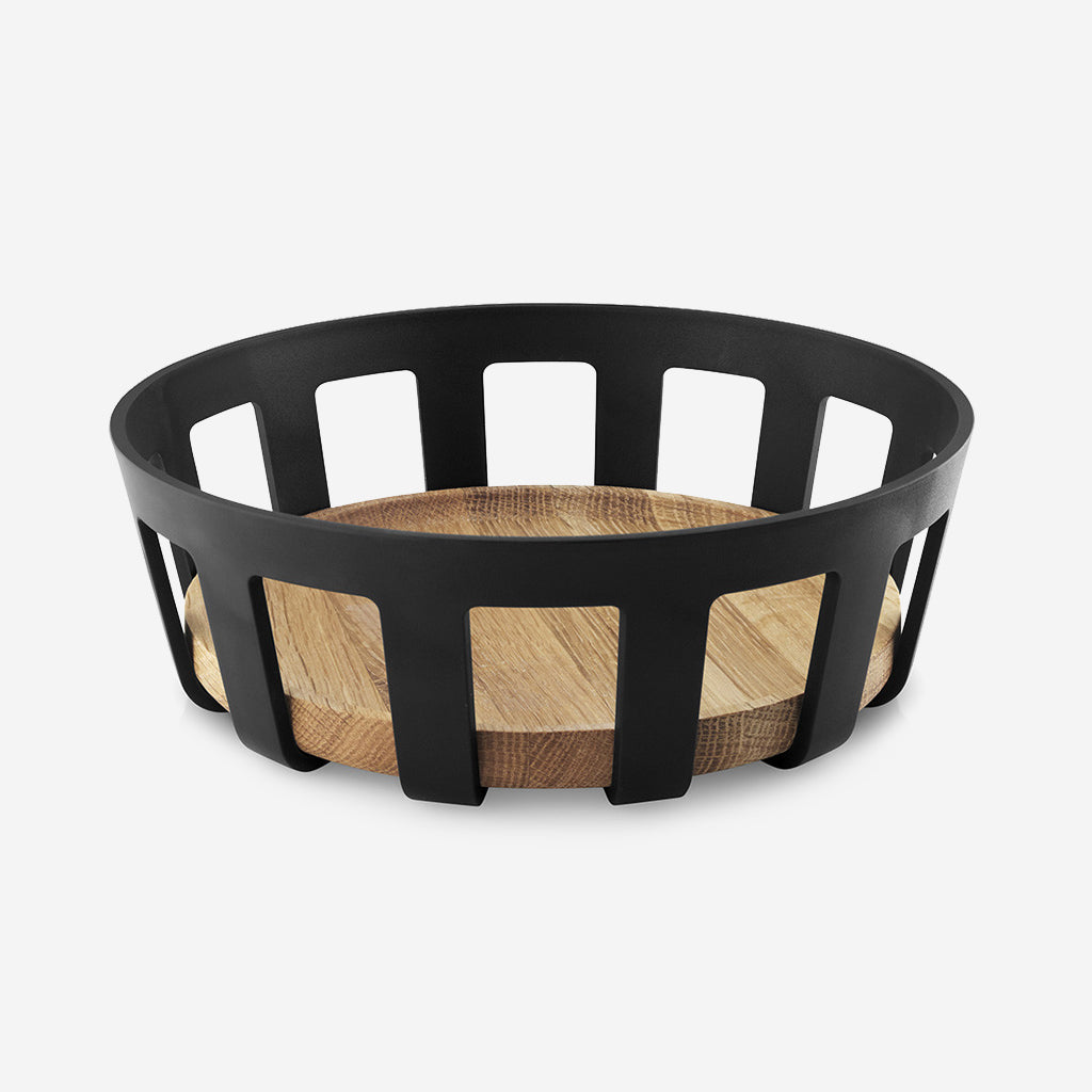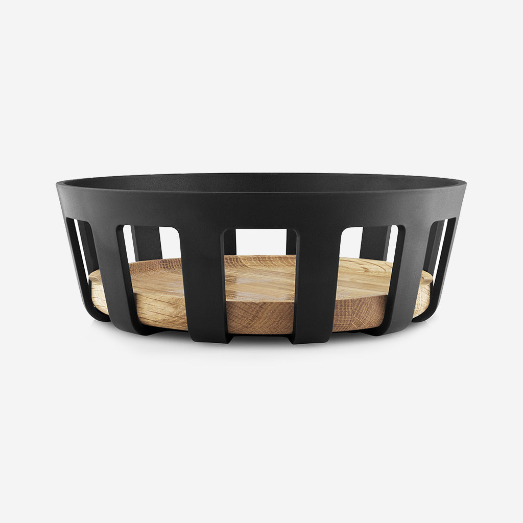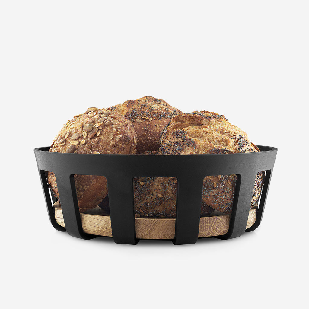 The Eva Solo Nordic Kitchen Bread Basket is a Matte black bread basket with solid oak base. Best used for stylishly serving bread, buns, etc. Functional and practical, yet simple and timeless in design that matches most homes.