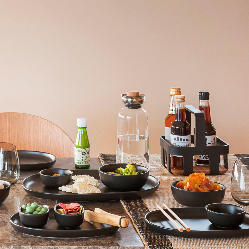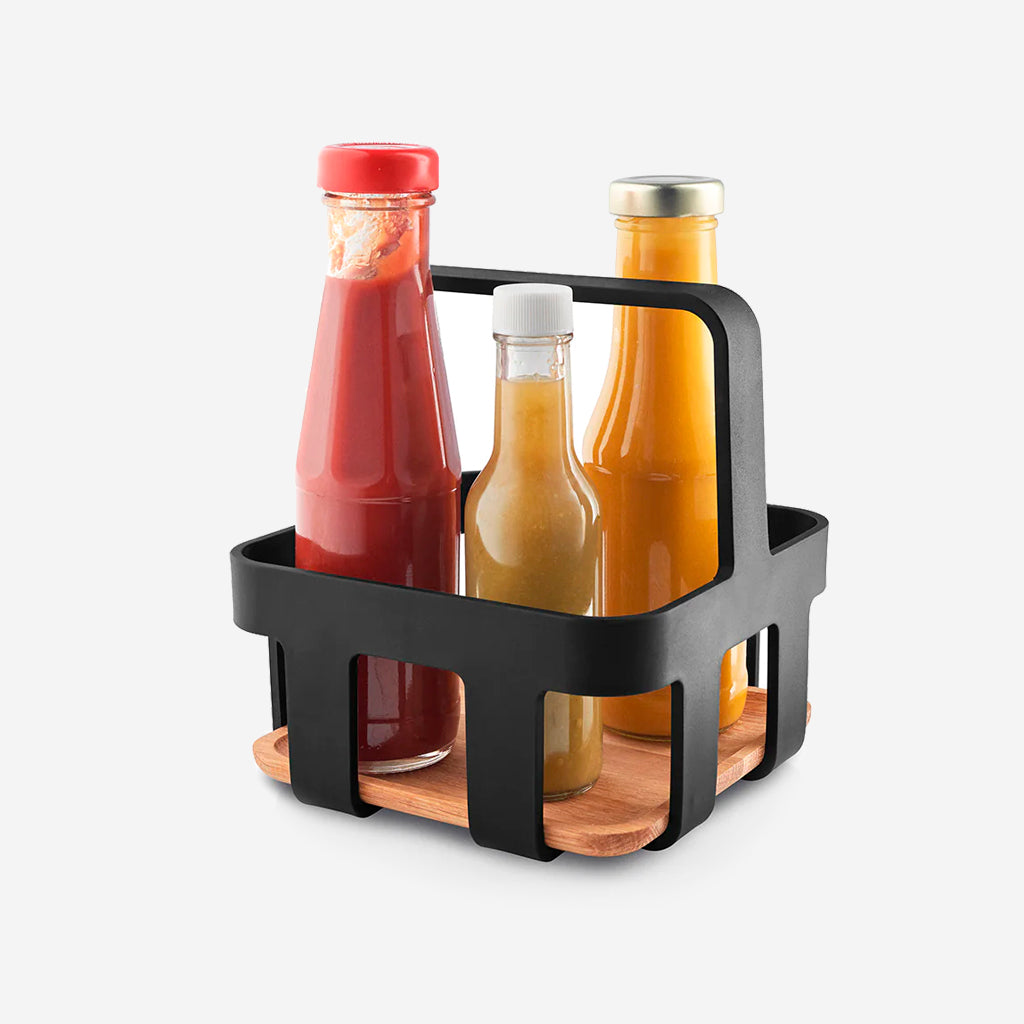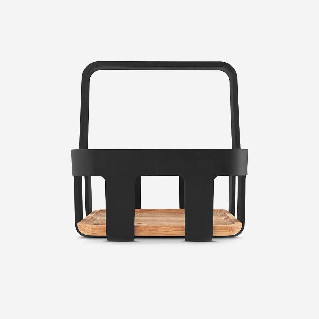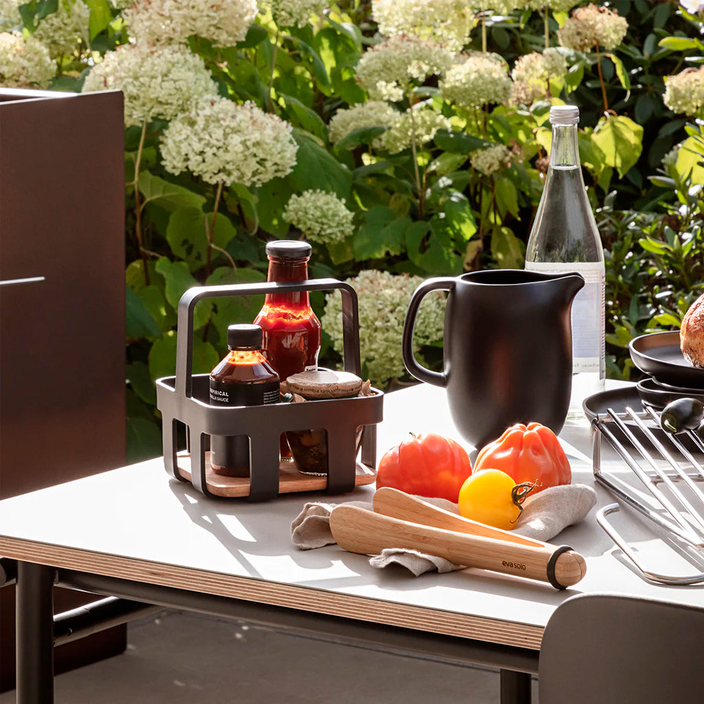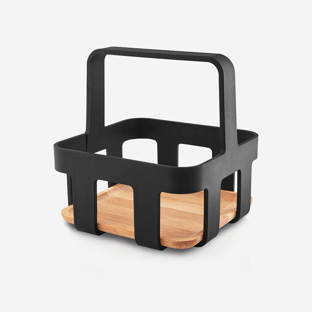 Assemble condiments in a decorative cruet with a streamlined, timeless design. The holder features a practical carrying handle and is ideal as a dining table centrepiece or for taking outdoors for patio barbecues, so that dressings and other condiments are on hand – and easily brought back indoors. Easy to clean. Simply wipe with a well-wrung damp cloth and maintain the oak by oiling it regularly.