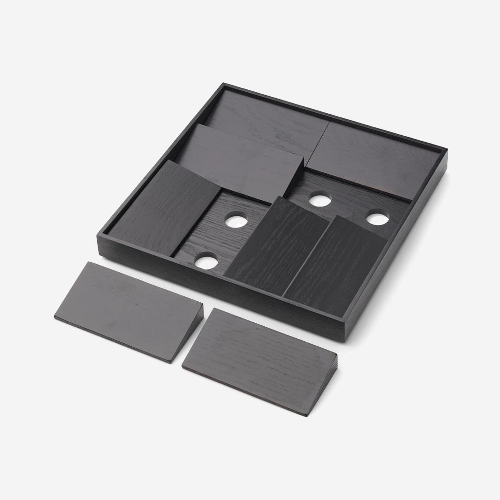 Duune table organizer is inspired by the sand dunes in the landscape behind Valencia. It comes in black ash & light ash and 2 sizes. Either Duune 4 or 8. The number indicates how many wooden bricks you have inside the wooden frame to create the space you need. Use Duune in your office, bathroom, or bedroom for your jewelries, watches etc. They can be used individual or together as one setup.