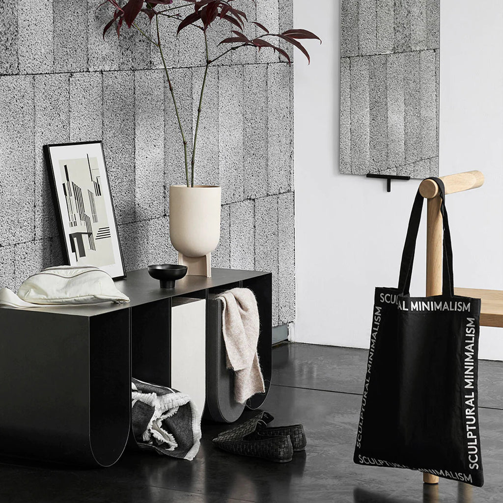 The Kristina Dam totebag is made of 100% cotton canvas and printed on its side is the Kristina Dam Studio tagline: Sculptural Minimalism. A fashionable canvas bag for everyday use.