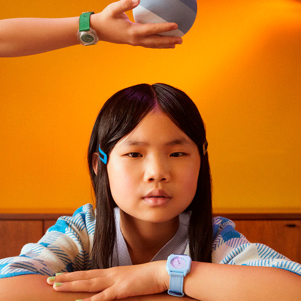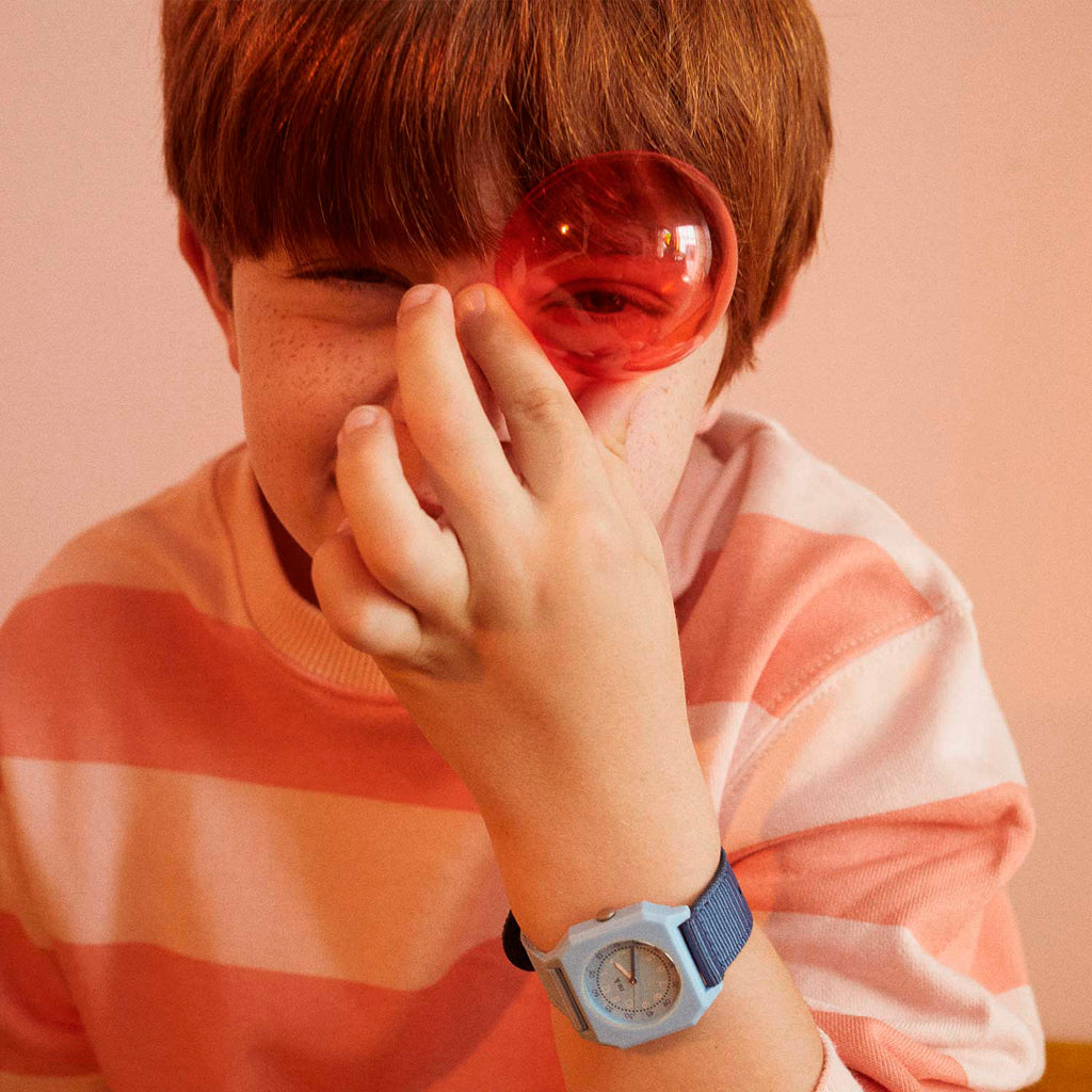 Stylish and playful, the Cotton Candy Smoothie watch by Mini Kyomo has been designed to be the perfect accessory for your child. It is equipped with a Japanese movement and a mineral glass. The watch has clearly readable dials with strong color contrast to make learning to read time an easy task. All hours and five-minute steps are written out, the minutes in-between are marked with small dots. The strap can be changed and mixed with other straps from the same collection.