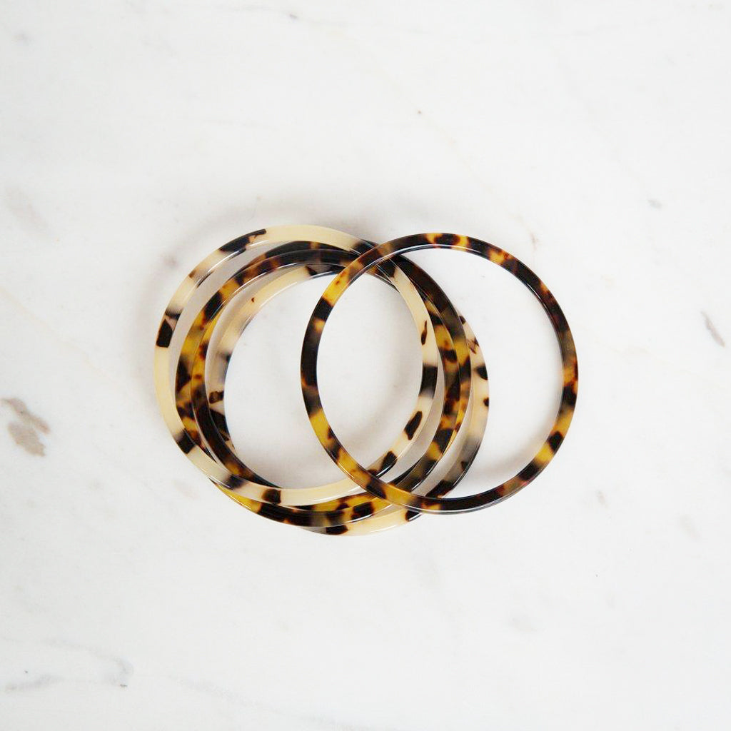 We love a bit of tort! These simple and delicate dark tort coloured bangles are perfect for everyday wear. Stacks well with silver or gold & works with black and tan watch straps or more tort bangles too!