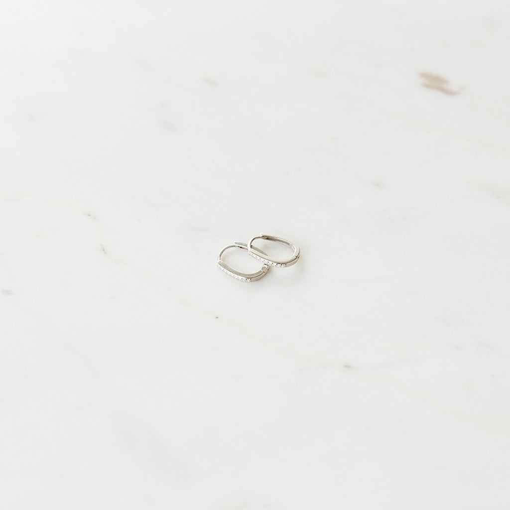 Sleek oval hoops w. mini cubic zircons Also available without zircons in a larger size.