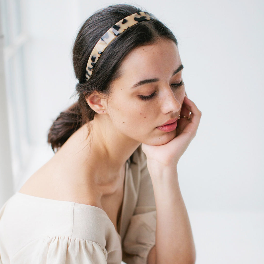A simple headband in Sophie's signature light tort. Sweet for everyday wear.
