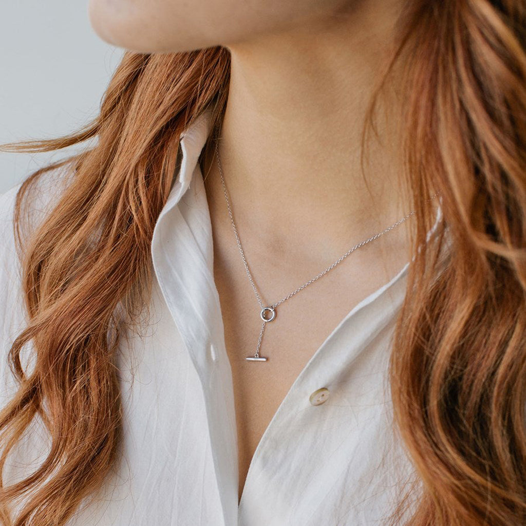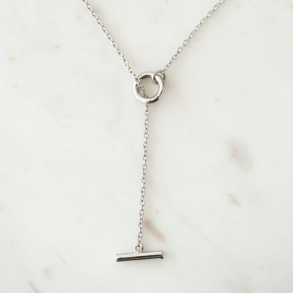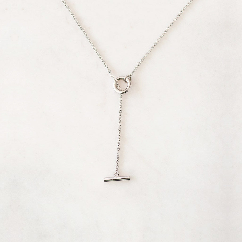 A classic necklace featuring a sweet bar thread clasp. Timeless, of course.