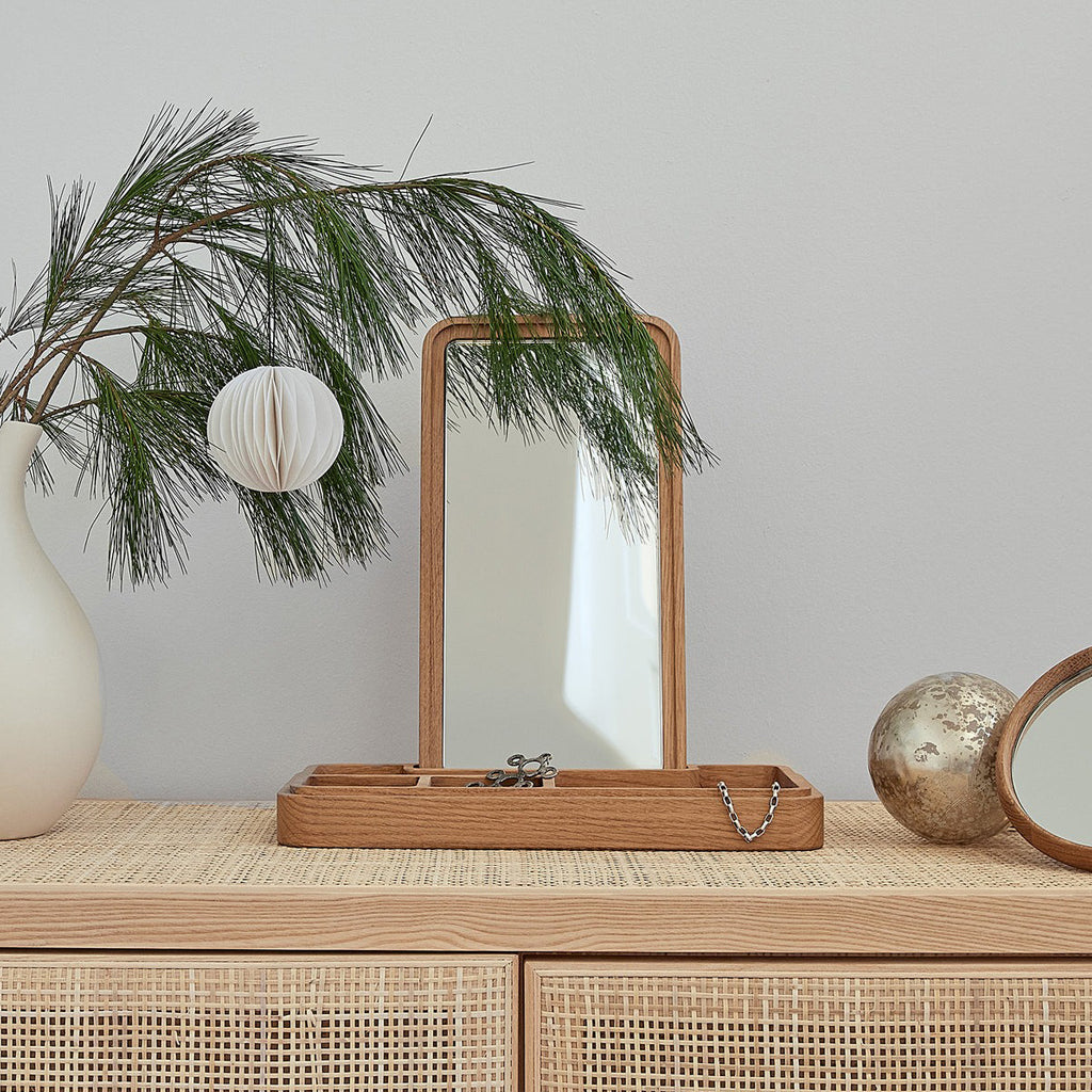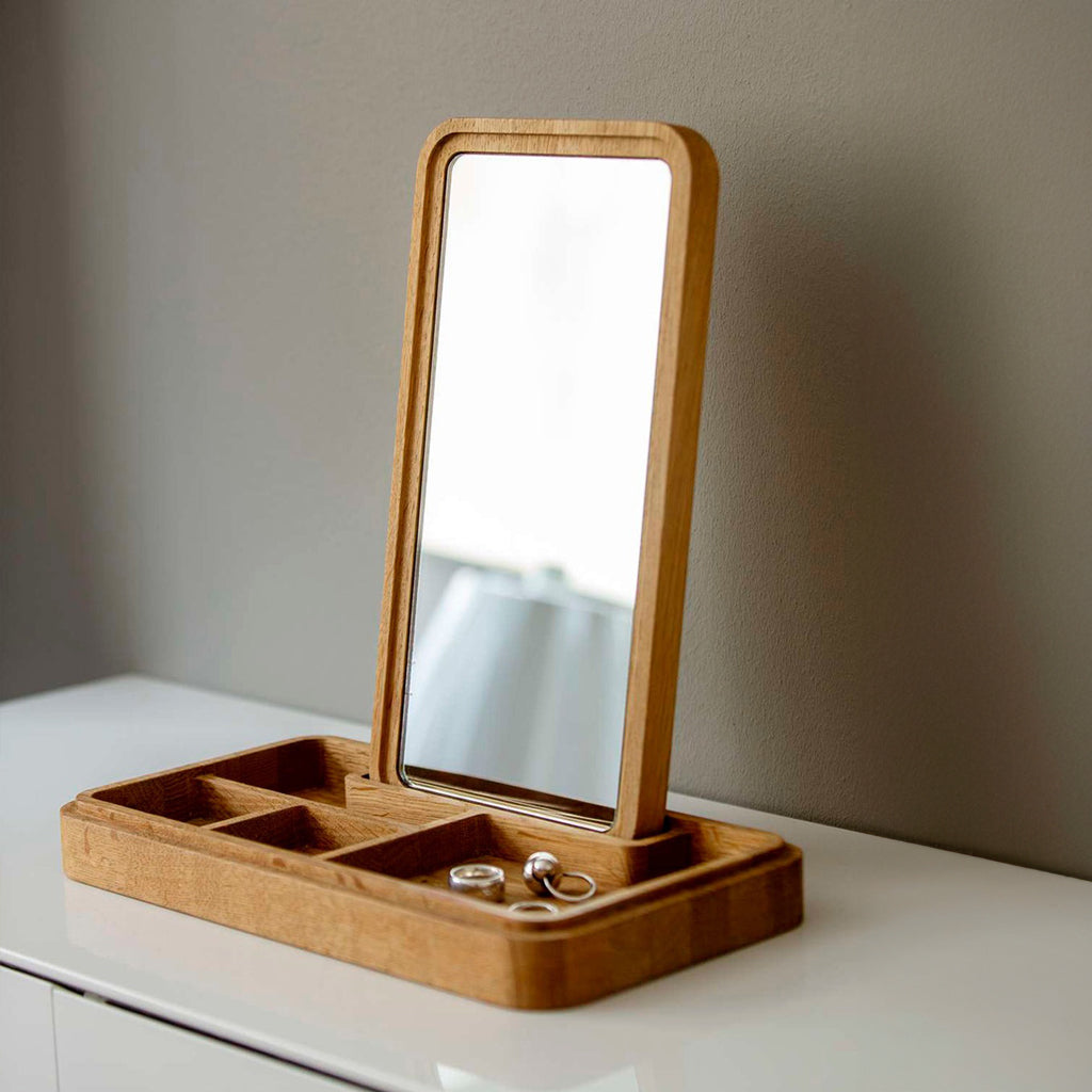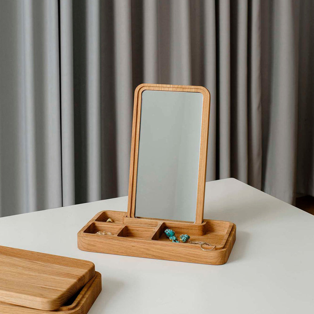 Mirror Box has the classic old jewellery box as it’s starting point but is, at the same time, also a multifunctional storage box for both men and women. Mirror Box has several compartments and the mirror, which is positioned inside the lid making it easy be place and remove.
