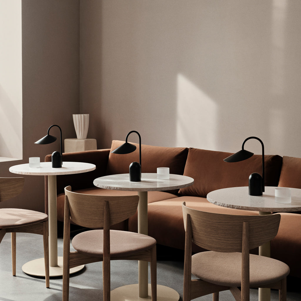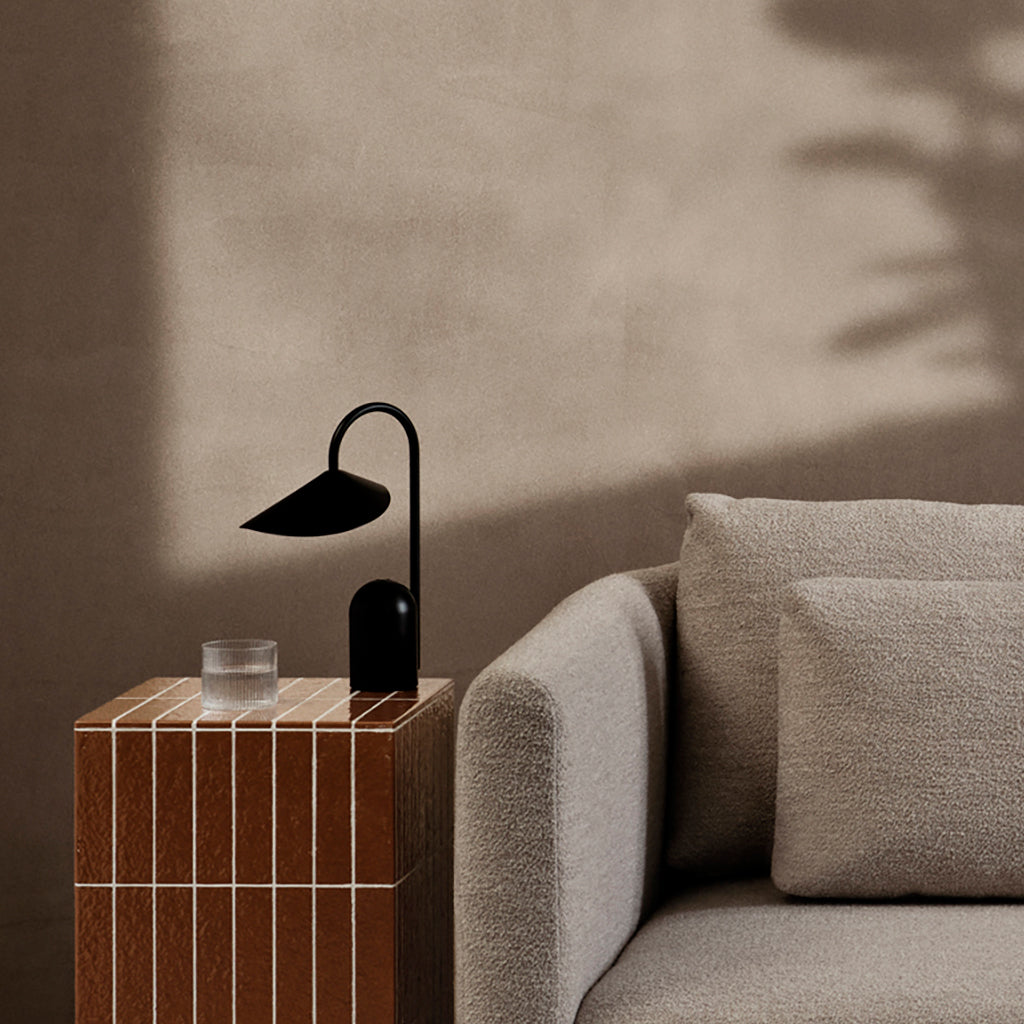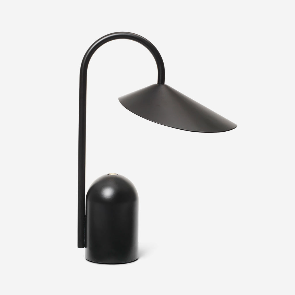 The Arum Portable Lamp is a versatile and mobile lighting solution. This petite, portable LED lamp is rechargeable via USB-C, allowing you to create a cozy setting anywhere you go. While it echoes the shape of the Arum Table Lamp, this portable version is crafted entirely from powder-coated iron and aluminium, offering durability and a sleek finish. Its design maintains the collection's signature elegance and balance, with its petal-shaped shade appearing to float from the stem-like rod.