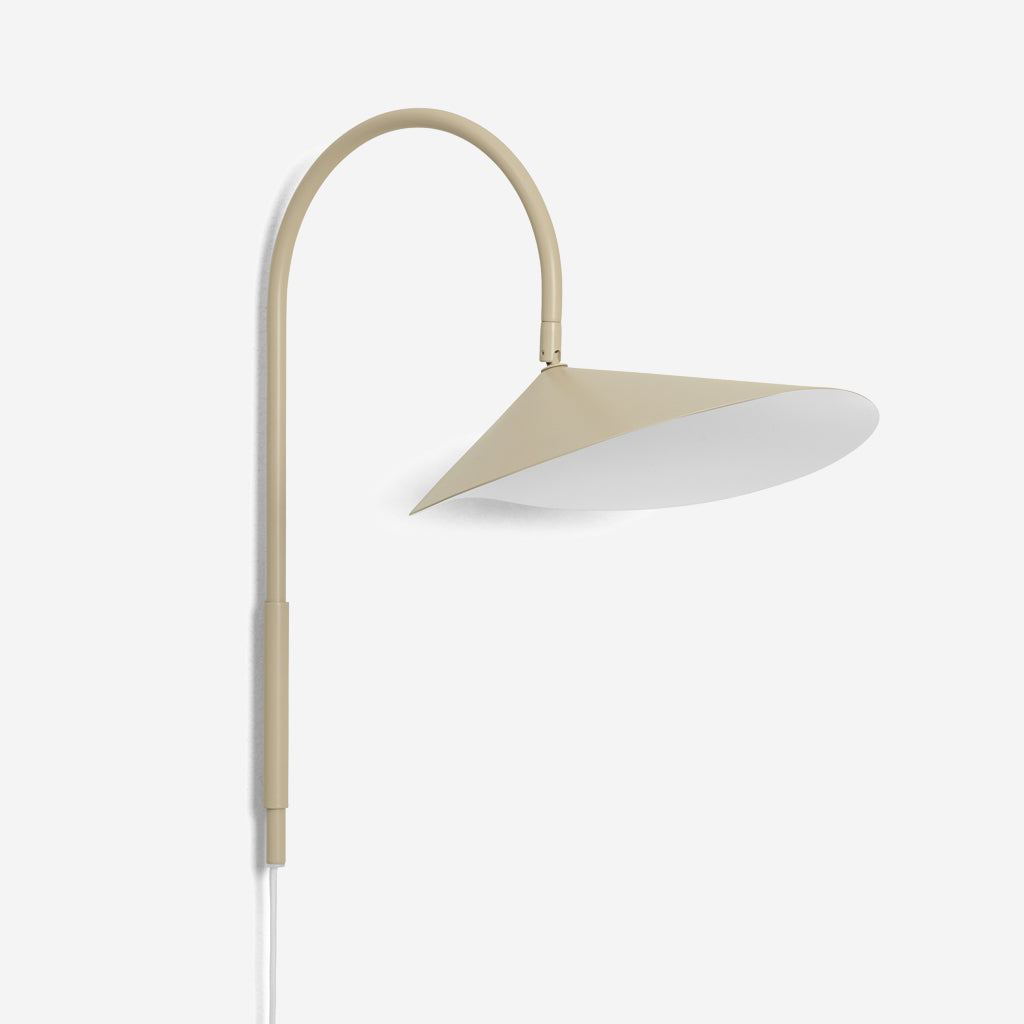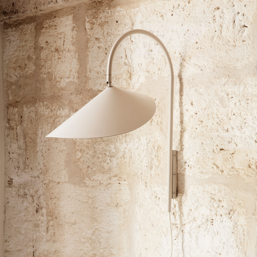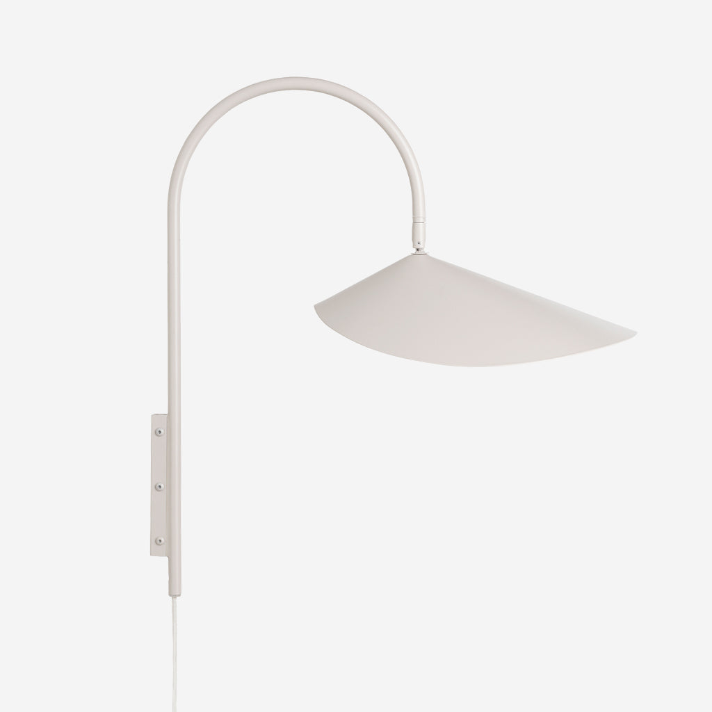 The Arum Swivel Wall Lamp is characterised by an organic shape that is elegantly suspended from a curved metal arch in a leaf-like manner. With the matte, off-white inside of the shade, the lamp provides a soft, evenly distributed light. The arm of the lamp includes a swivel mount, allowing the lamp to turn in all directions, ensuring that the Arum Swivel Wall Lamp will provide optimal light in every situation. The lamp includes a fabric cord with a switch and comes with a wall bracket, making it is easy to mount the Arum Swivel Wall Lamp on your desired wall.