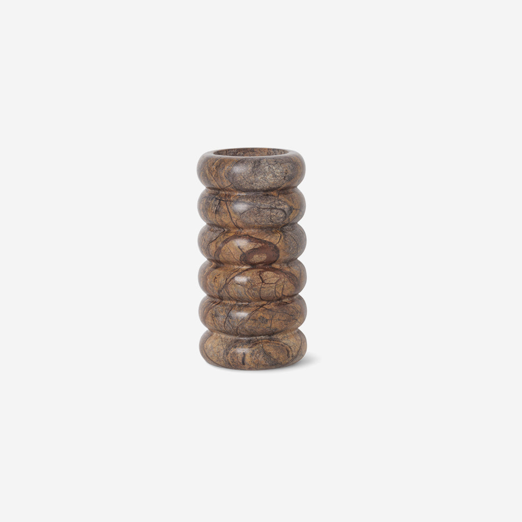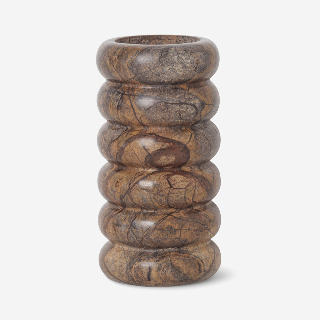 Cut in the stunning Brown Bidasar marble, the Bendum series expresses the meeting of nature and culture in a soft geometric design. Filled with a bouquet of your favourite flowers, the Bendum Vase adds the natural elegance of the unique stone to your home.
