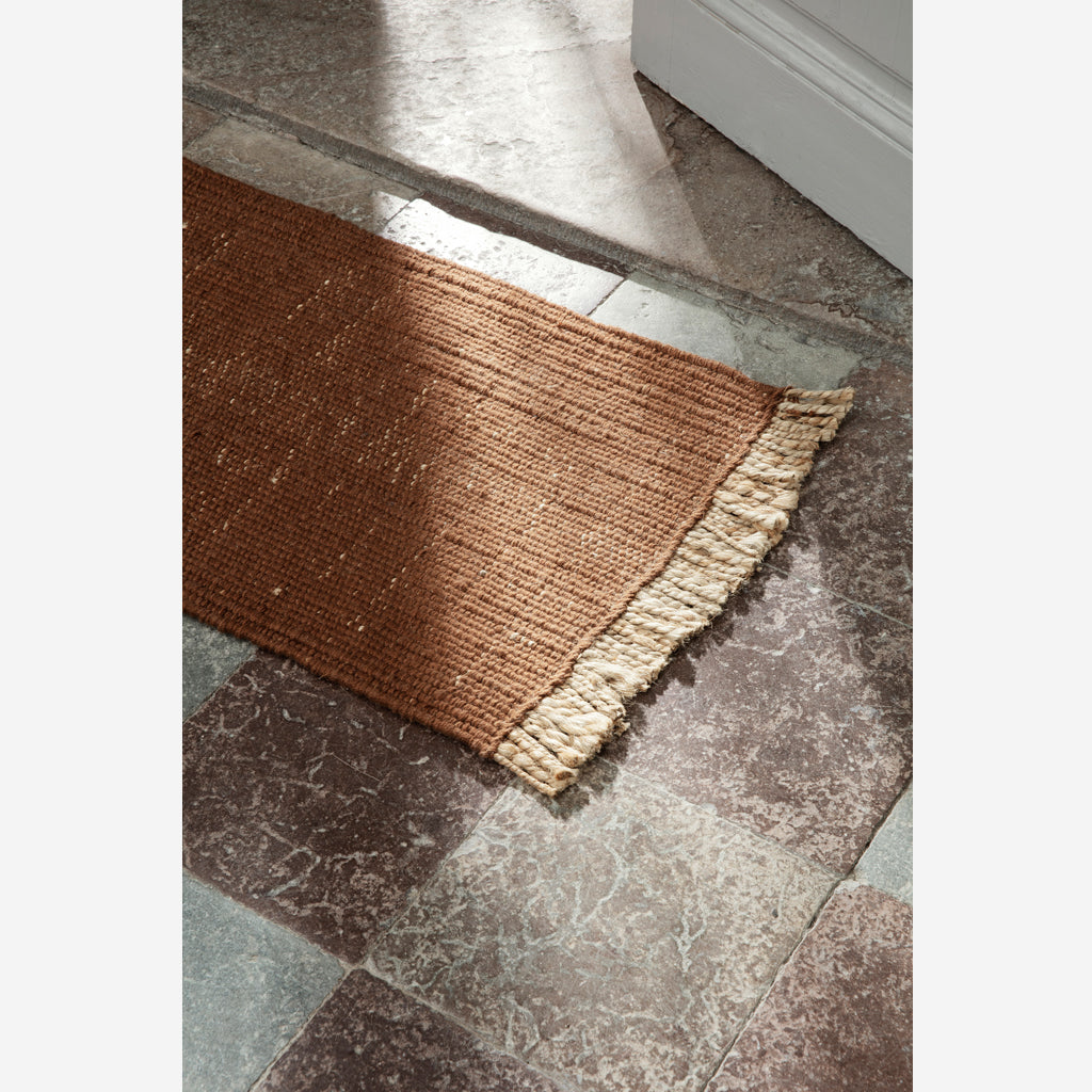 Handwoven in a mix of PET yarn from recycled post-consumer plastic and jute, the Block Mat is a reliable friend in busy homes. Place the mat at every entrance or hallway that needs some extra floor protection. Available in various colours and with raw fringes along two sides, the Block Mat is a lovely addition to any household.