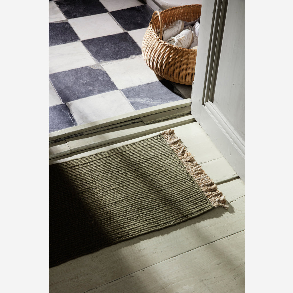 Handwoven in a mix of PET yarn from recycled post-consumer plastic and jute, the Block Mat is a reliable friend in busy homes. Place the mat at every entrance or hallway that needs some extra floor protection. Available in various colours and with raw fringes along two sides, the Block Mat is a lovely addition to any household.