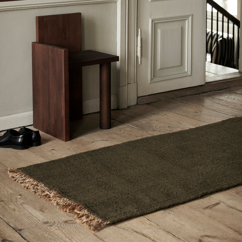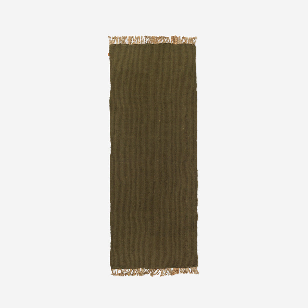 Handwoven in a blend of natural jute and PET yarn made from recycled post-consumer plastic, the Block Runner brings warmth and texture to your interior space. Its elongated shape makes it ideal for the hallway or a narrow area, while the raw fringe adds a touch of rustic charm.