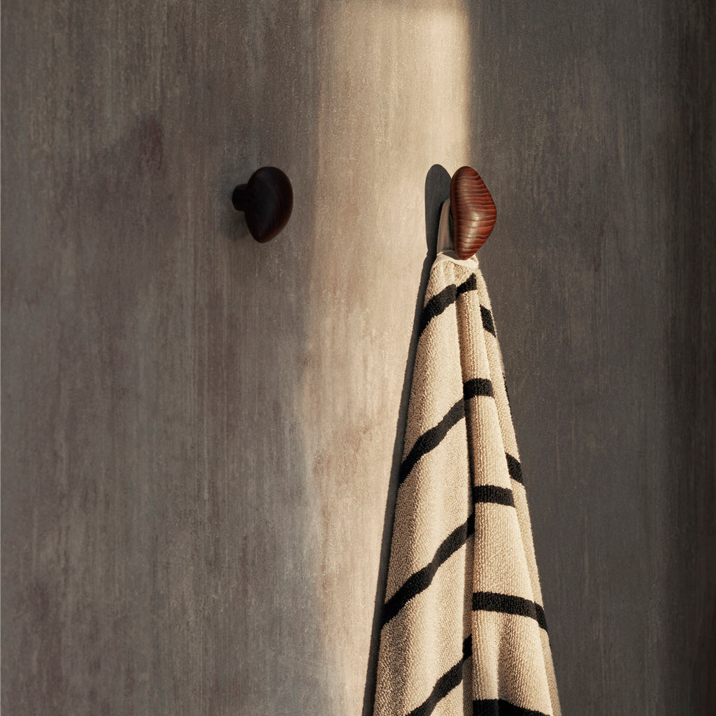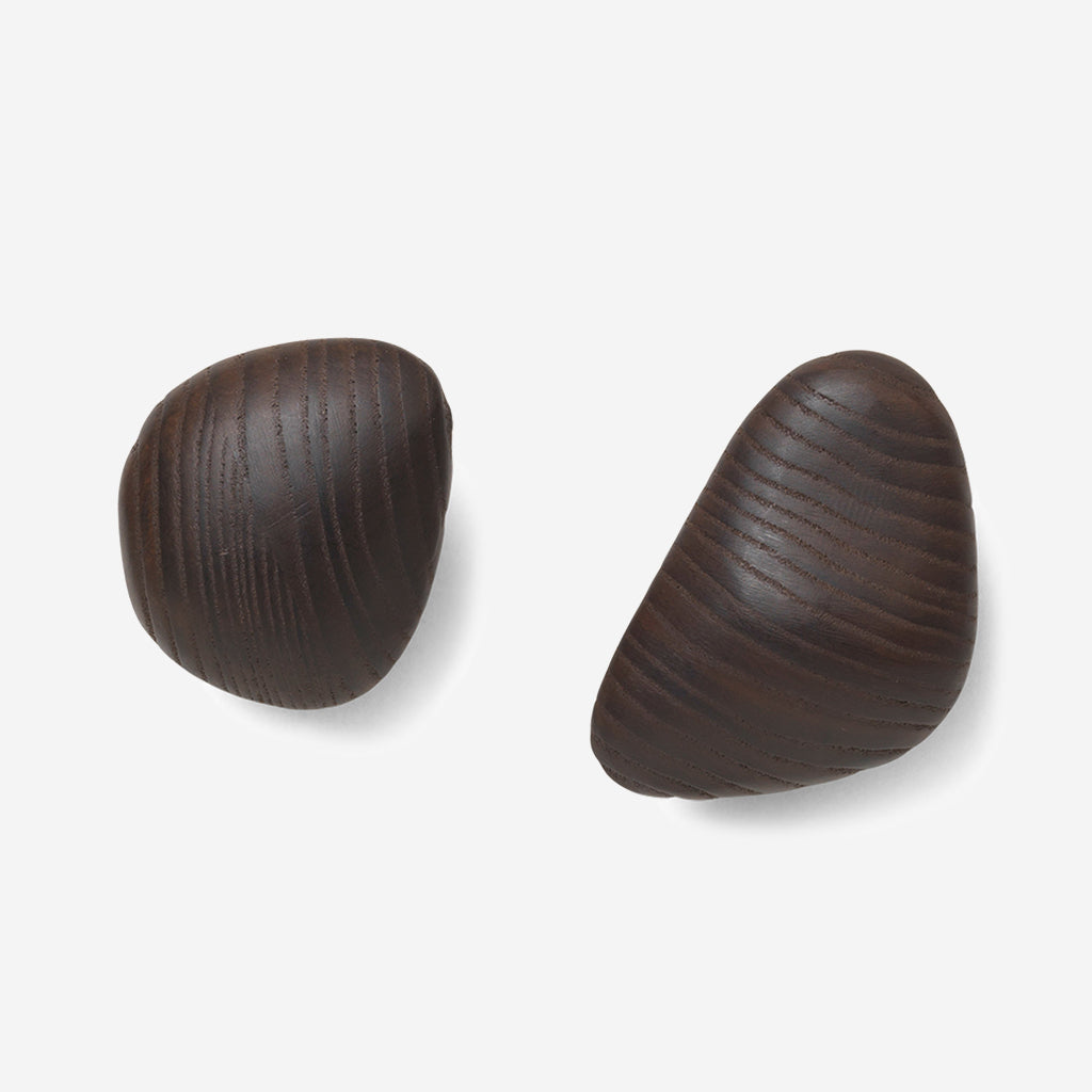 Characterised by their soft curves and sculpted details, the Cairn Hooks will add an artistic and functional touch to your wall. Inspired by cairns, man-made stacks of stones that are often raised for memorial purposes, the organic wooden hooks have been carved from solid, FSC™ certified ash wood. Featuring delicate, rounded edges, the pieces have been treated with a carbonised finish for a distinct look. The Cairn Hooks come as a set of 2, allowing you to effortlessly make room for coats in the hallway, towels in the bathroom or textiles in the kitchen.