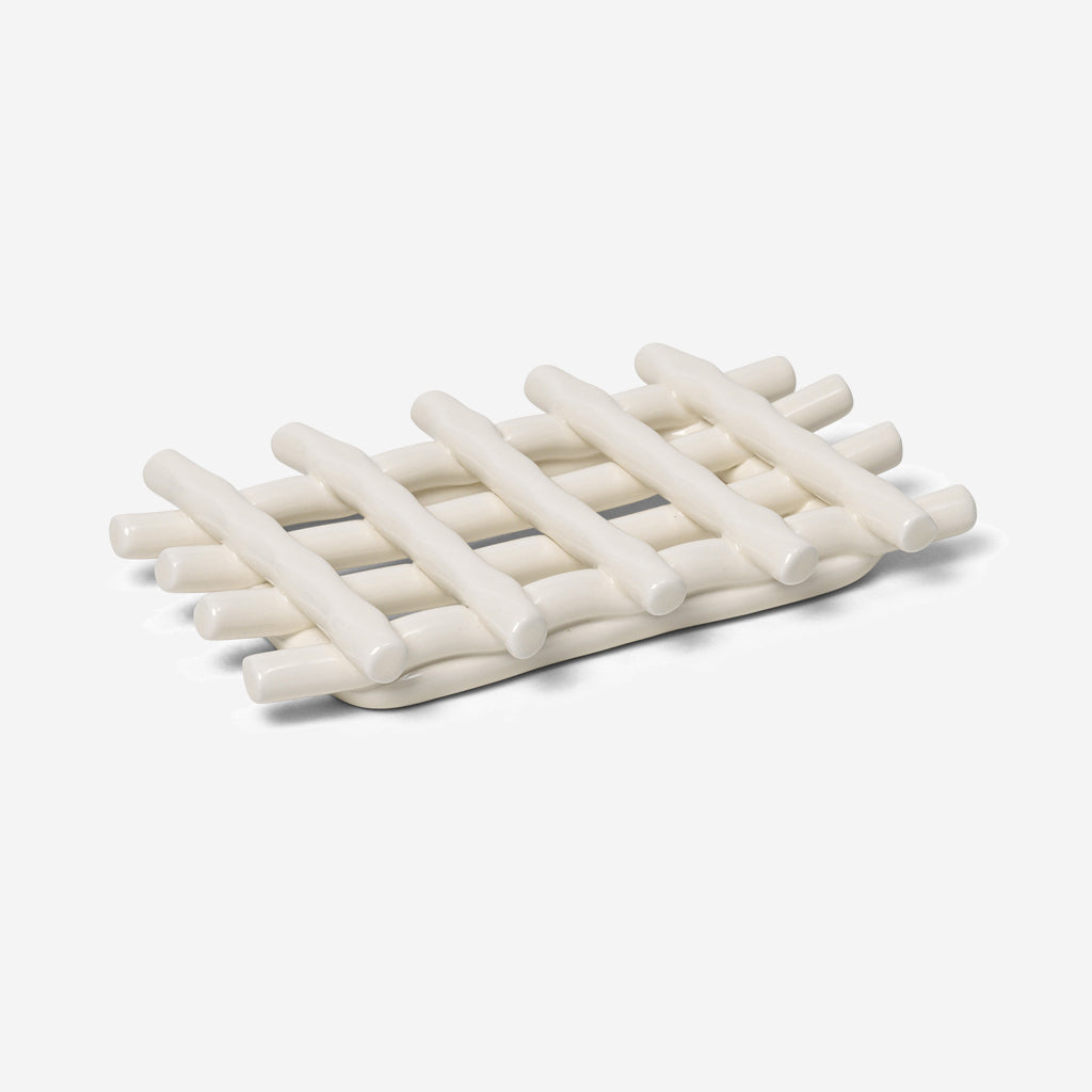 Bringing the expression of traditional weaving techniques to pottery, Ferm Living's handmade Ceramic Soap Tray recreates the familiar feel of woven objects. The unique pattern lends an artistic expression to the petite tray, while the ceramic material ensures that it is ideal for holding a bar of soap next to your kitchen or bathroom sink.