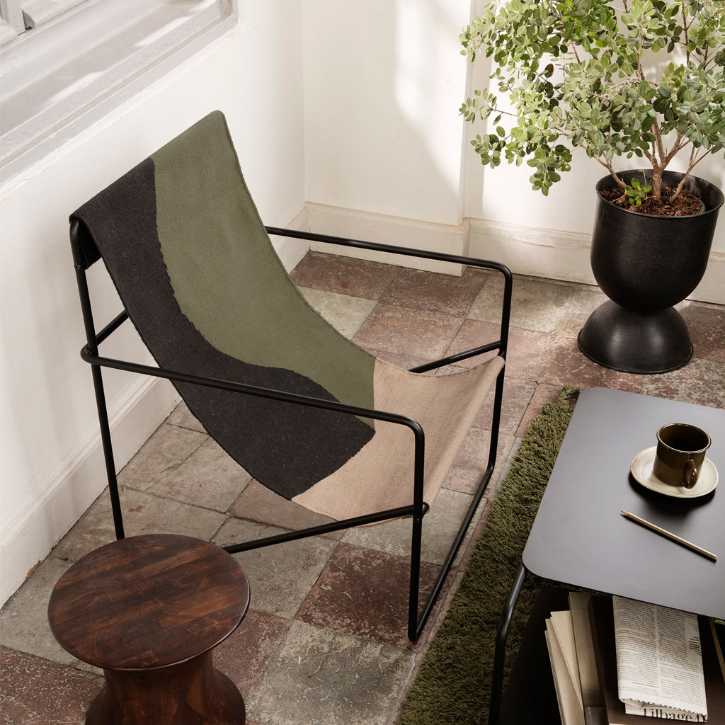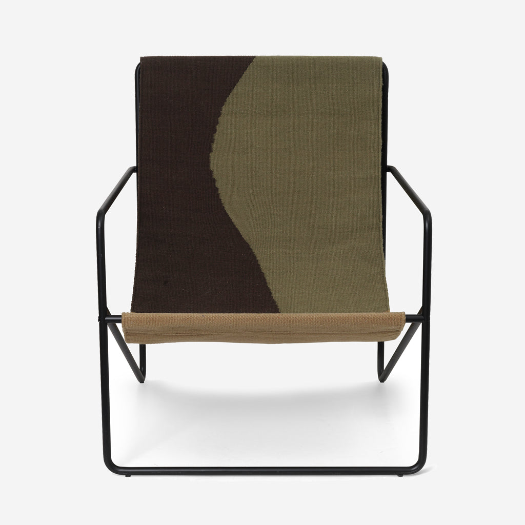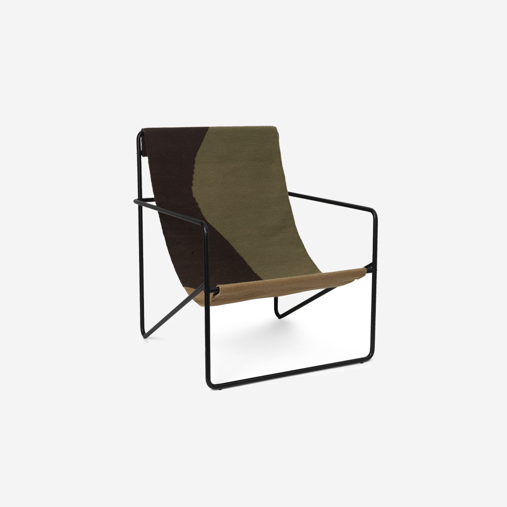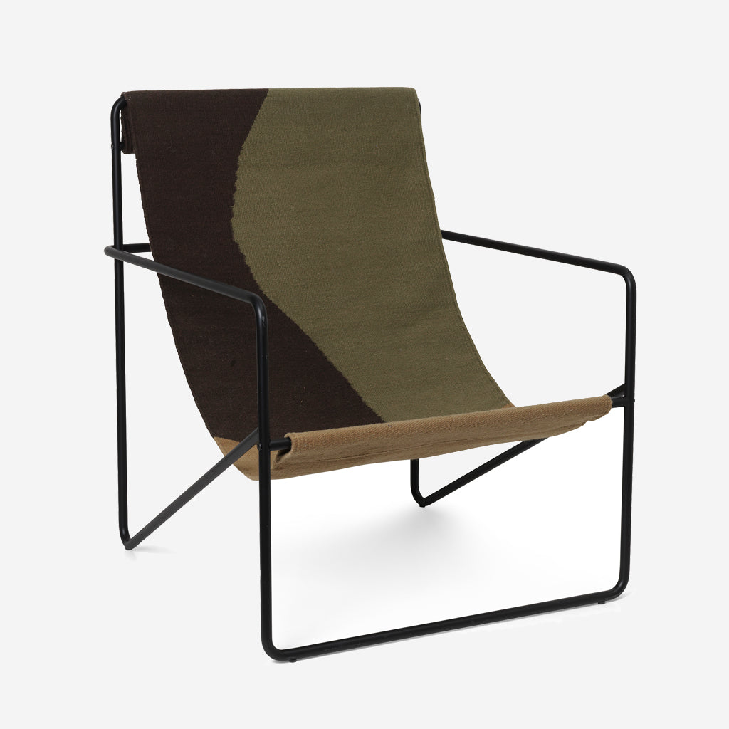 Inspired by soft desert dunes, the Desert Lounge Chair is a modernist chair with a graceful profile, crafted from a tubular powder coated steel frame, holding an interchangeable woven textile seat made entirely from recycled post-consumer plastic that has been spun into PET yarn. Suitable for use both indoors and out, the lounge design invites relaxation.