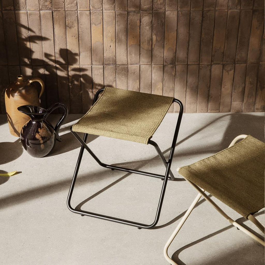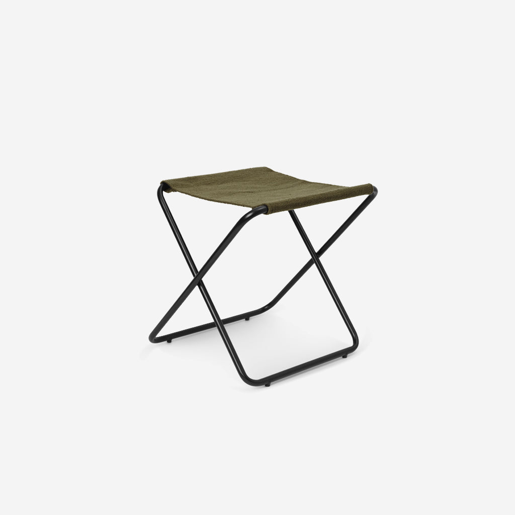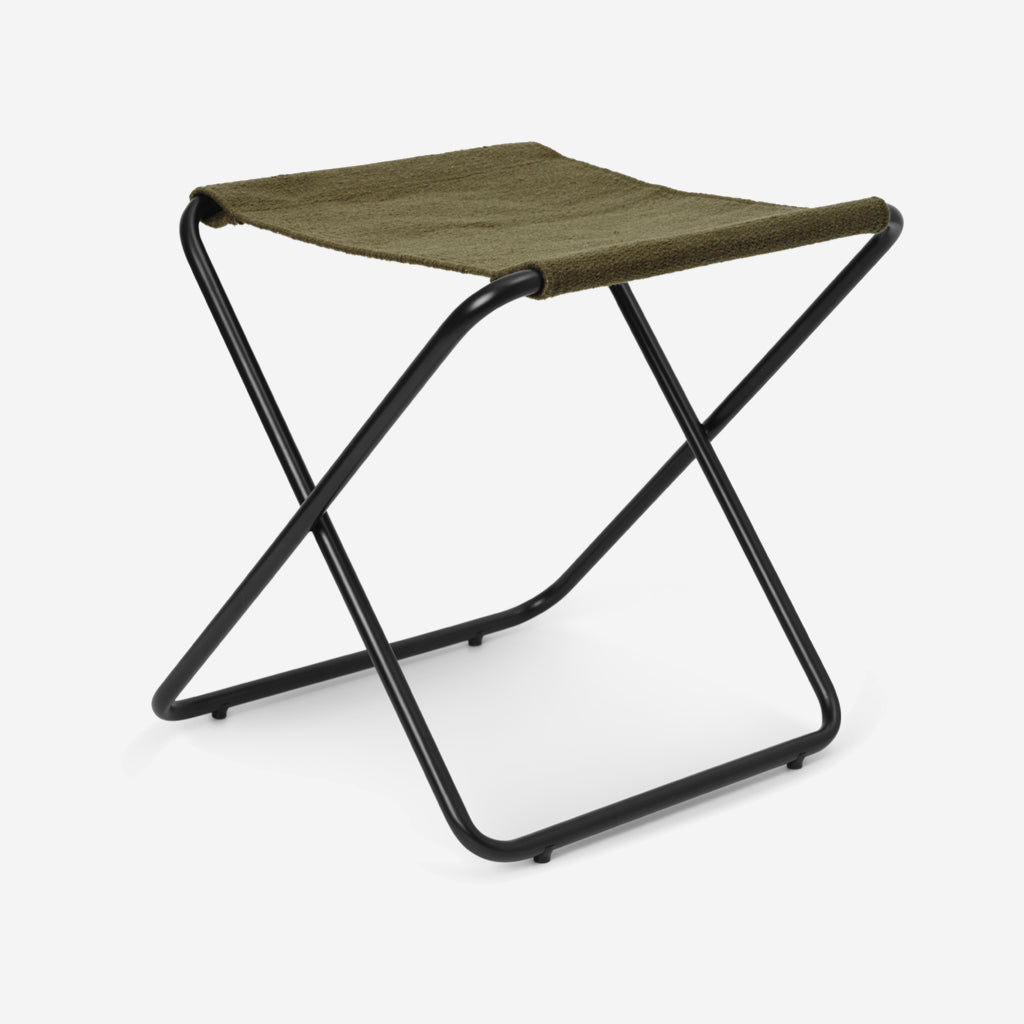 A modern take on a beloved outdoor classic, the Desert Stool is an elegant, portable seating solution with a simple, graceful profile. Suitable for both indoor and outdoor use, the frame is crafted from tubular, powder coated steel, while the seat is made entirely from recycled post-consumer plastic that has been spun into PET yarn, making the stool especially durable for outdoor use. The fold-up function ensures that the Desert Stool is easy to transport and can efficiently be stored away when not in use.