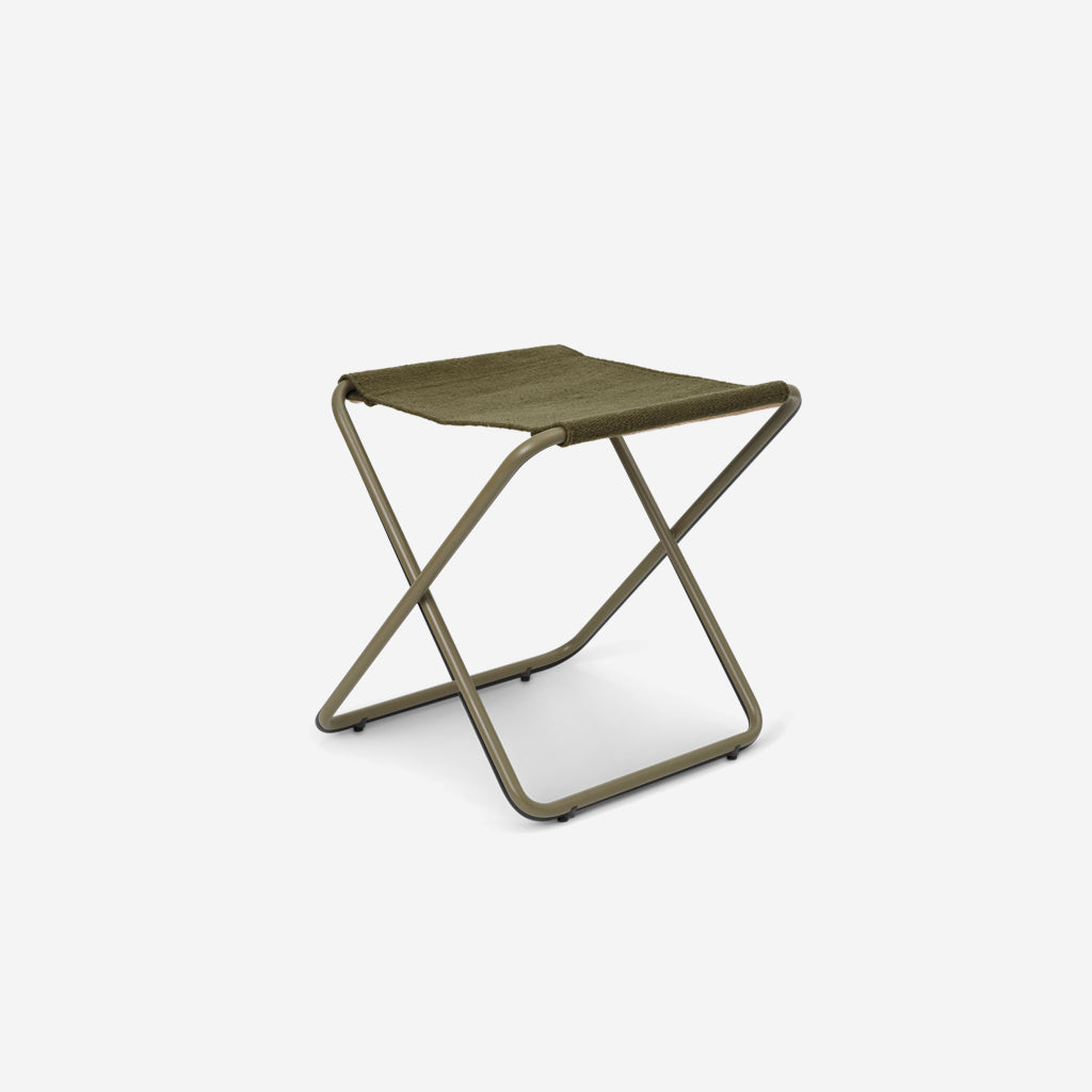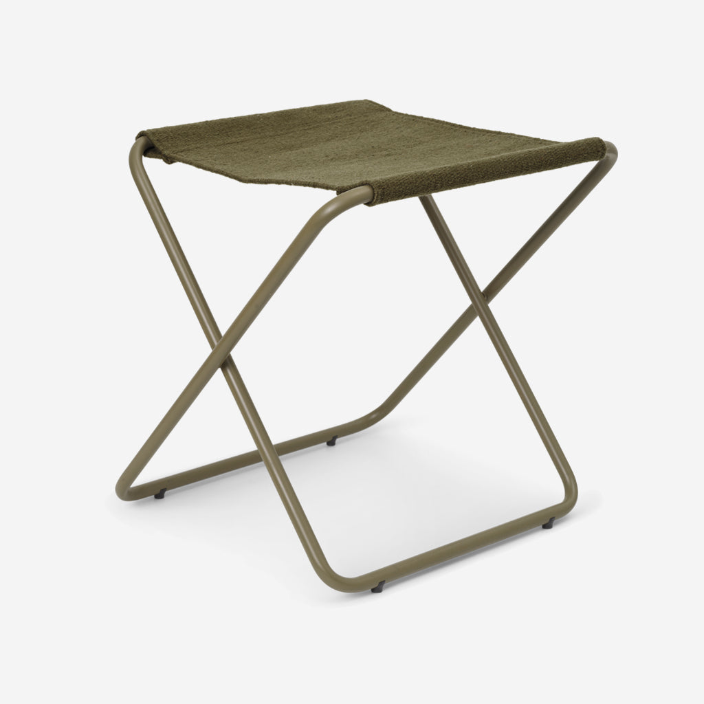 A modern take on a beloved outdoor classic, the Desert Stool is an elegant, portable seating solution with a simple, graceful profile. Suitable for both indoor and outdoor use, the frame is crafted from tubular, powder coated steel, while the seat is made entirely from recycled post-consumer plastic that has been spun into PET yarn, making the stool especially durable for outdoor use. The fold-up function ensures that the Desert Stool is easy to transport and can efficiently be stored away when not in use.