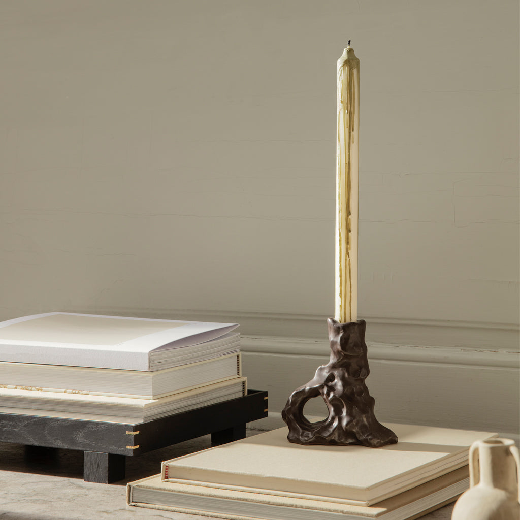 Made in stoneware with a matte glaze, the Dito Candle Holder has a unique, tactile expression. Originally sculpted by hand, its characteristic shape and pattern come from the process of pressing fingers onto the clay. It was this sculpting method that sparked the idea for its name – Dito, which means finger in Italian. Place it on your windowsill or dinner table as a statement piece.