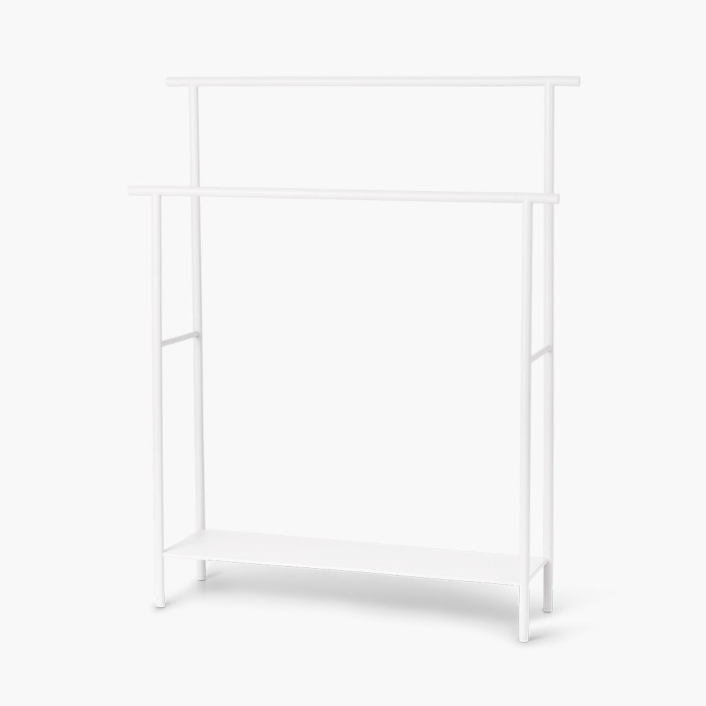 Originally consisting of just the Dora Clothes Stand, the Dora Collection has expanded to include a series of freestanding furnishings that are ideal for bathroom. Made from powder-coated metal, the simple yet functional designs are rust-resistant, so are ideal for use in damp conditions. The Dora Towel Stand allows you to hang several towels at once, as well as providing you with extra storage space below.