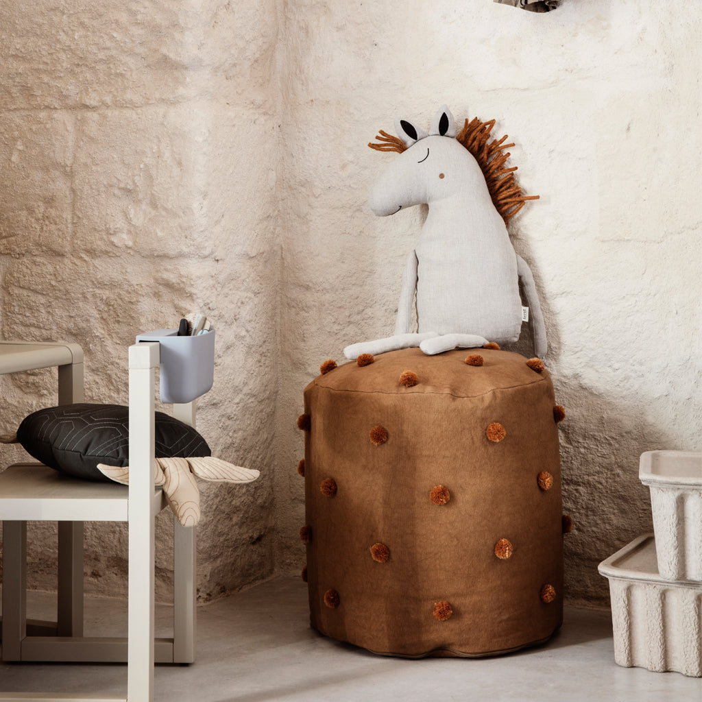 Our Dot Tufted Pouf is a playful addition to any home space, as an additional surface for everyday play or an extra seat for unexpected guests. Shaped around a padded centre, its covered with durable cotton canvas that’s been punch-needled with tufted polka dots in a complementary colour.