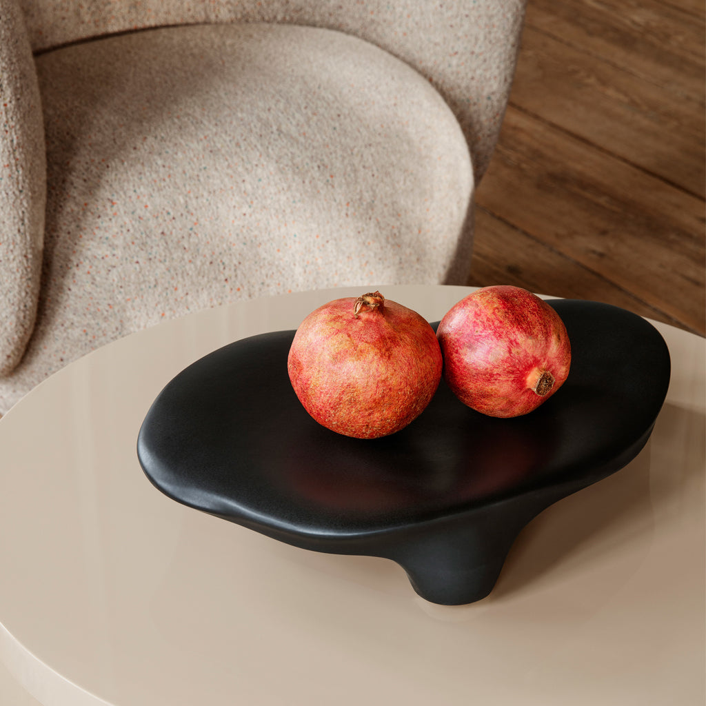 Studying the unique silhouette of the Esca Piece, you are instantly charmed by its quirky, unusual shape. Its name, "Esca", comes from the word escalated, and with the centrepieces' three legs, which lifts it off the surface, the otherwise chunky design is given a welcomed element of lightness. Use the Esca Piece for stylishly serving hors d'hœuvre for your guests, or let it stand as a decorative sculpture and centrepiece on the coffee table.
