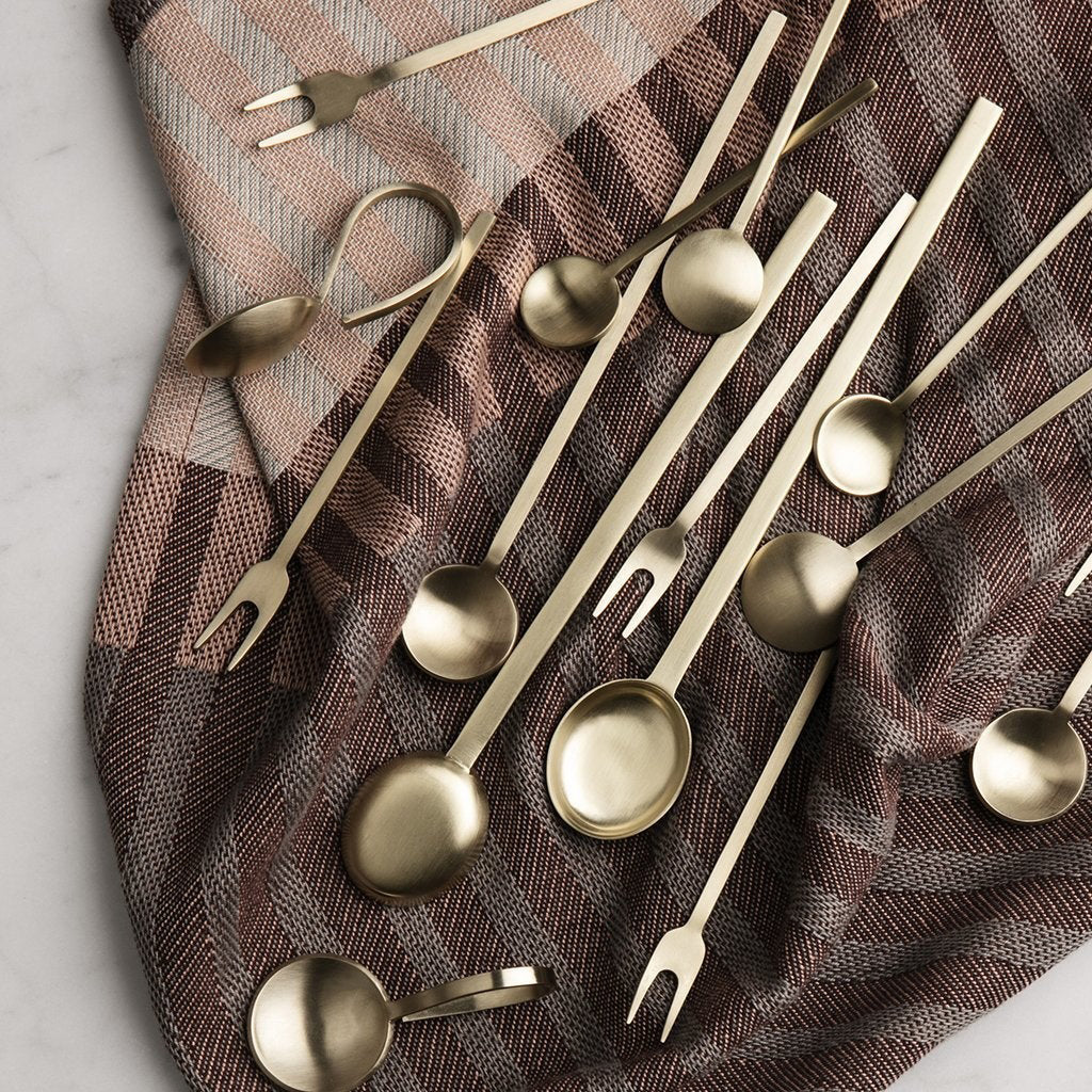 The Ferm Living Fein Relish Fork is not only handy when serving olives, slices of meat, or fresh fruits but the brushed brass tone will add a little glamour to the table.