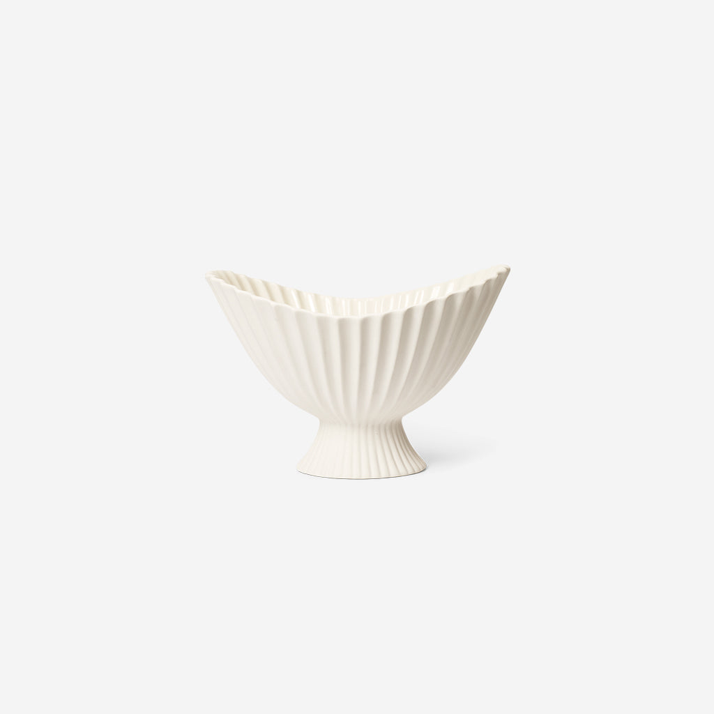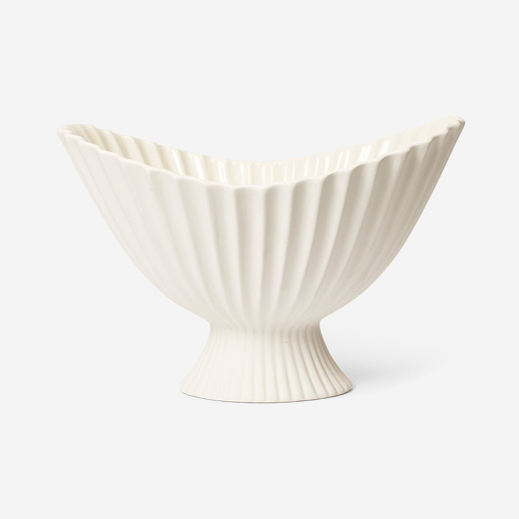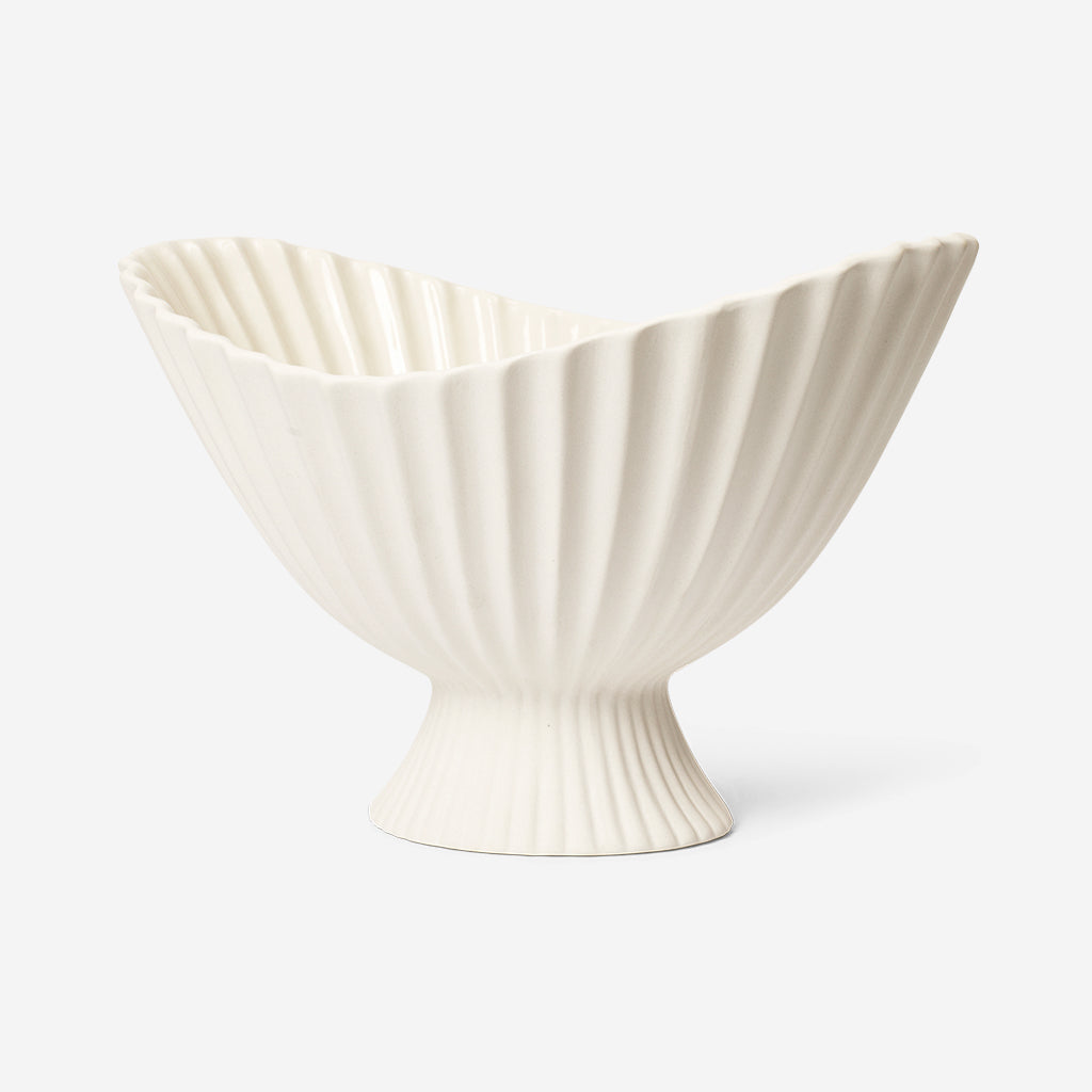 Instantly drawing attention, the sculptural, Ferm Living ceramic Fountain Bowl is an elevated bowl with a soft, pleated expression. Inspired by the shape of classic fountains, it can be filled with grand flower decorations or stand on its own as a decorative and delicate addition to your table setting. Making it suitable to store a variety of different objects, the Fountain Bowl has a matte exterior while the inside is finished with a clear glaze.