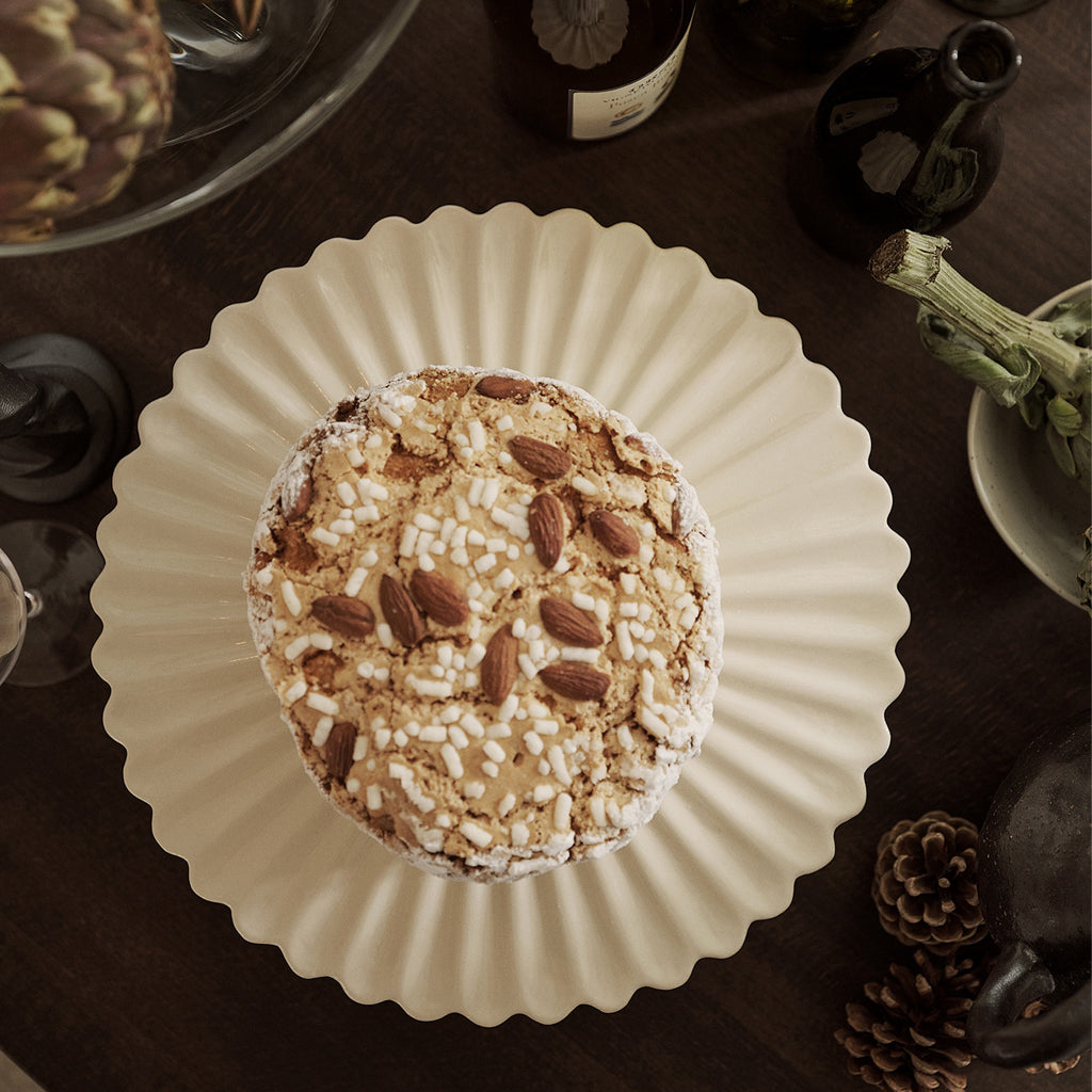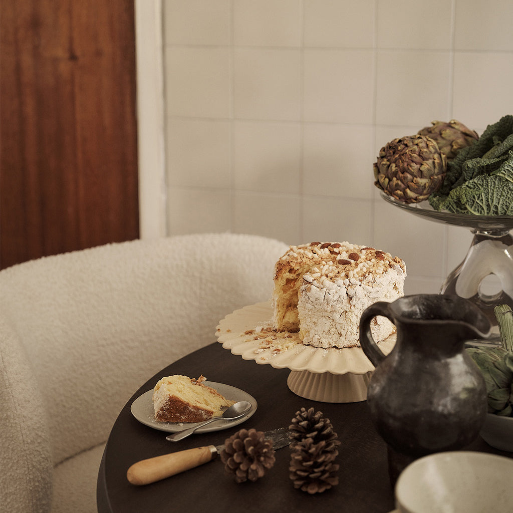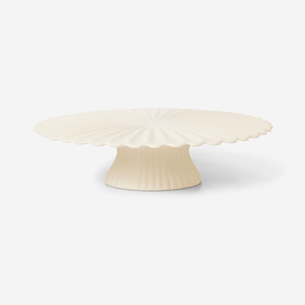 Instantly drawing attention, the sculptural, ceramic Fountain Cake Stand is an elevated dessert stand with a soft, pleated expression. Inspired by the shape of classic fountains, it can be used as a centrepiece at a wedding reception, a charming addition to a tea party, or styled to add a touch of elegance to the kitchen counter. The stand features a glazed top surface for easy cleaning.