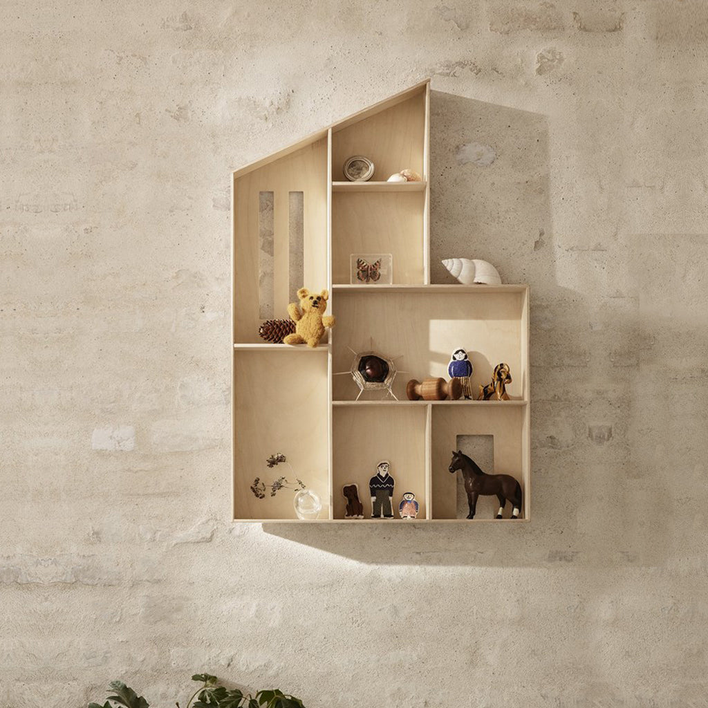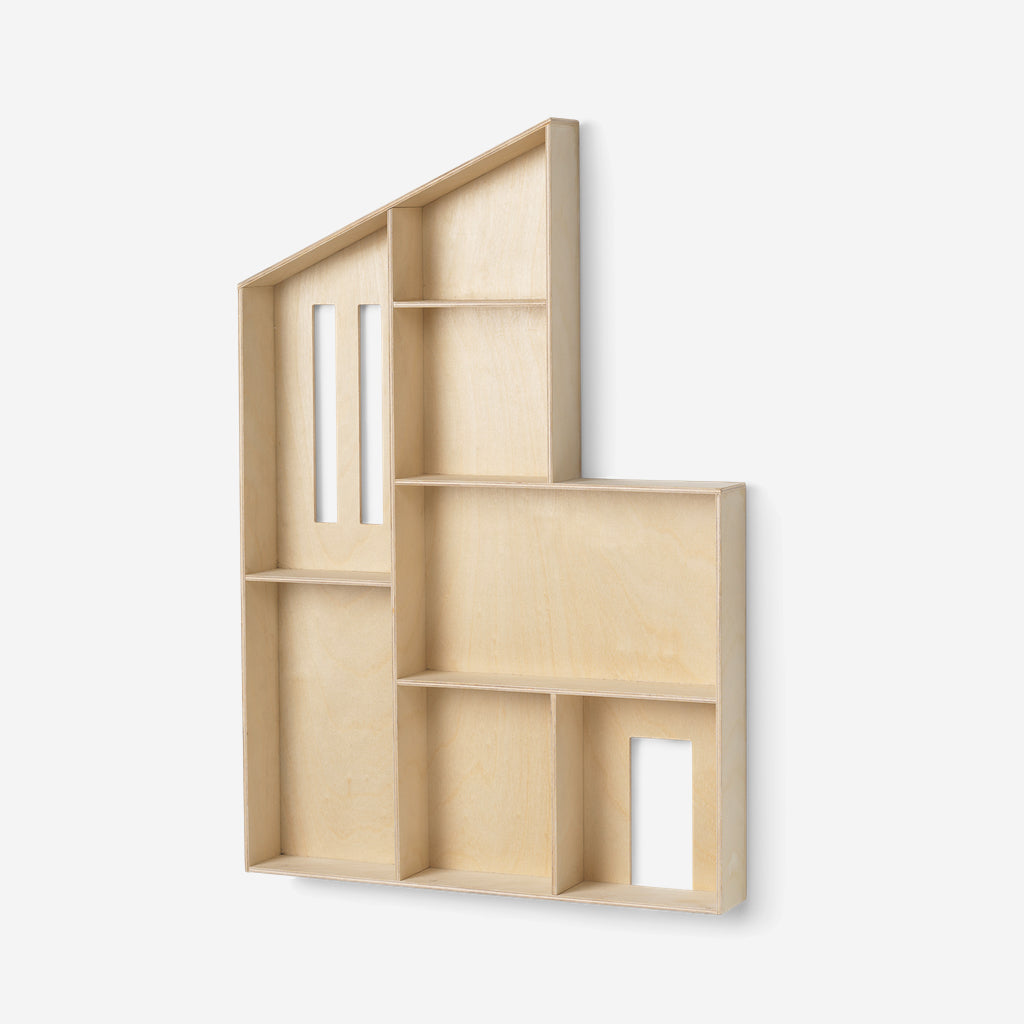 Let your child’s imagination soar with our reinterpretation of a classic Funkis House, beautifully crafted from natural plywood. This tall, slender version of the Funkis House is easily attached to the wall, and gives your little one a charming spot to store their favourite treasures and toys. The simple lines and modernist feel of this stylish shelf is sure to be a hit with children and adults alike.