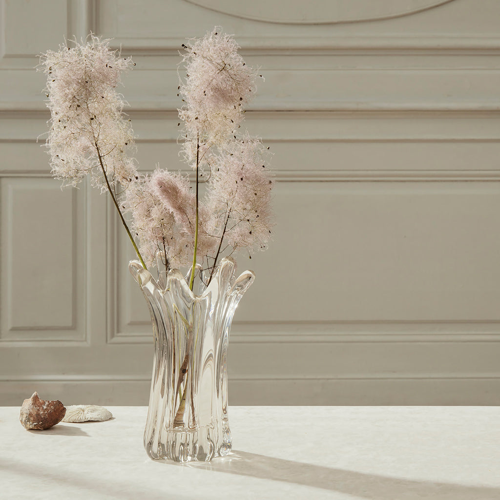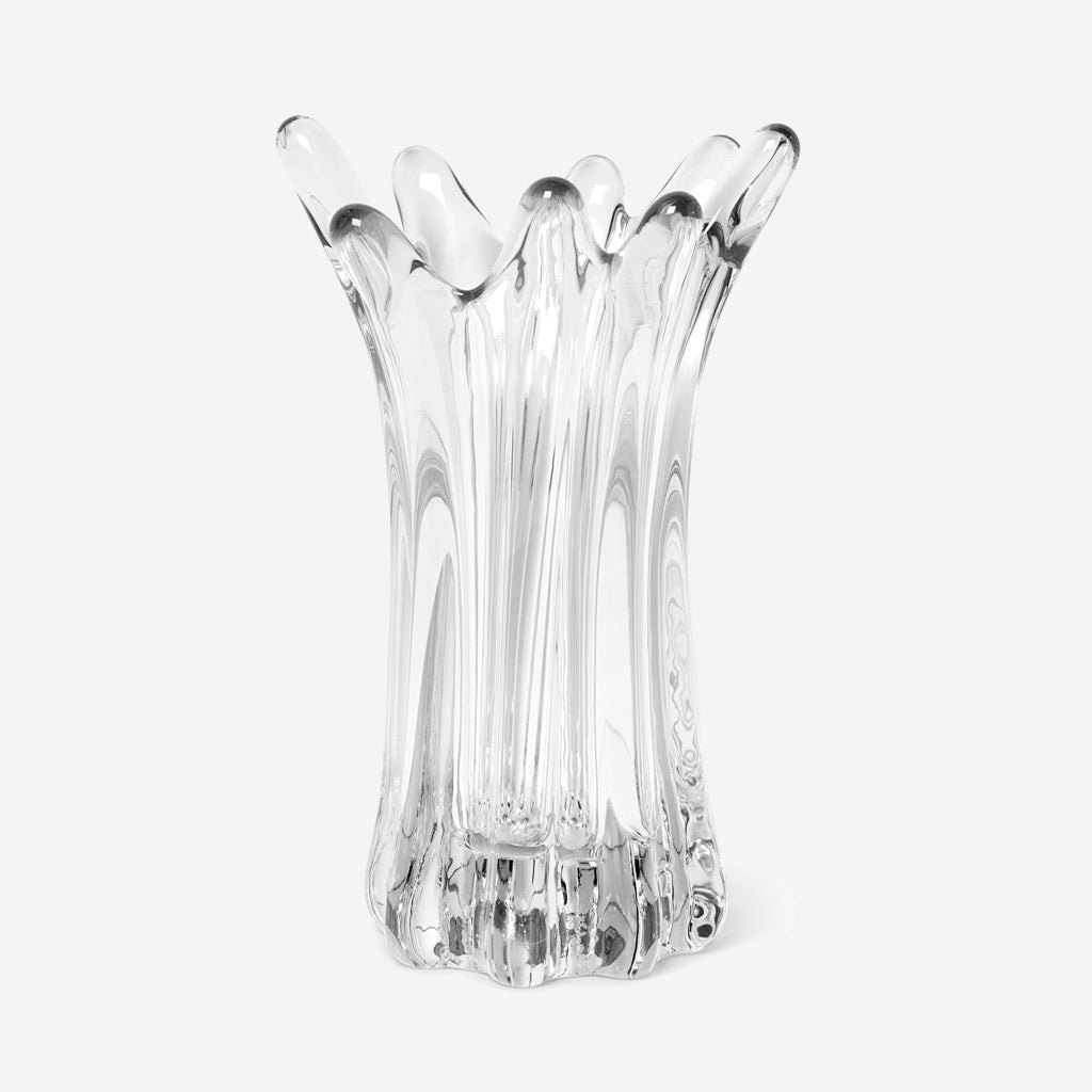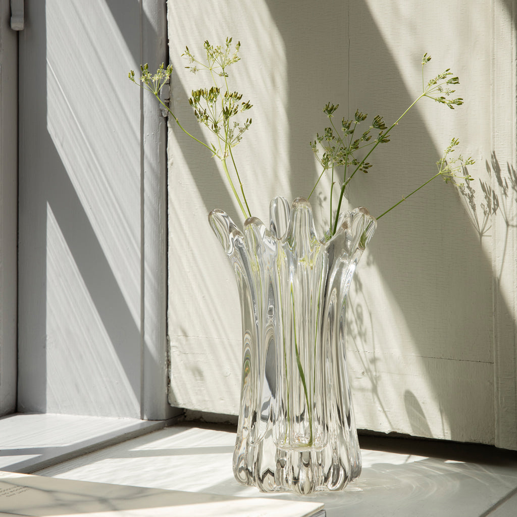 Handmade from solid glass, the Holo Vase has a fluid, organic form that has been sculpted by human hands, stretching and shaping the elevated spires during the melting process and ensuring that each individual piece is unique. Use the vase to display your favourite flora or to make an artistic impression all on its own.