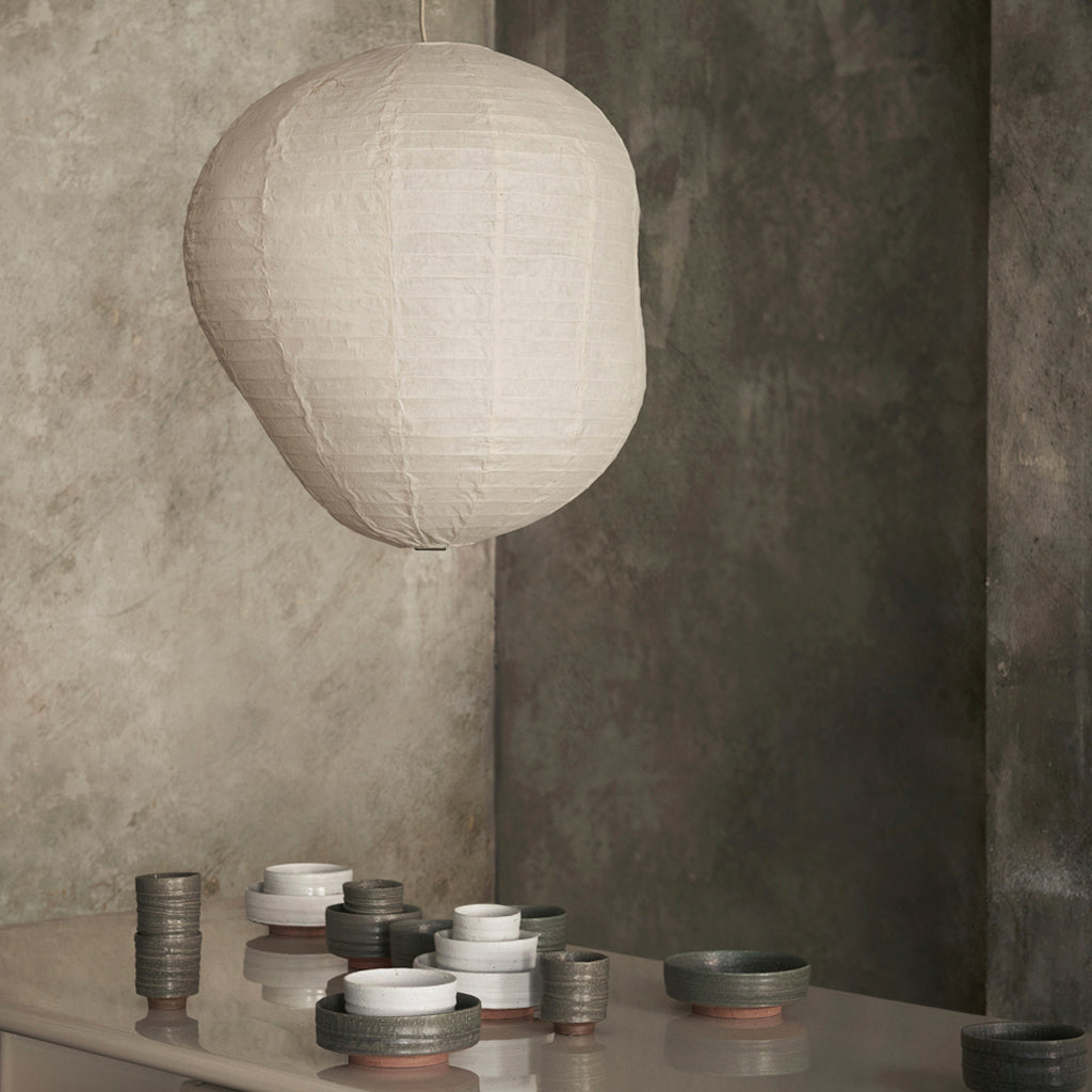 The Kurbis Lampshade presents a charming twist on the classic rice paper lantern. Crafted from characteristically rich Washi paper, Kurbis deviates from the traditional round shape, instead embracing an organic and asymmetric silhouette that gives it a distinctive and unique look. Inspired by the pumpkin and squash family, the rice paper lampshade emanates a soft and gentle light that adds ambiance and charm to any room.