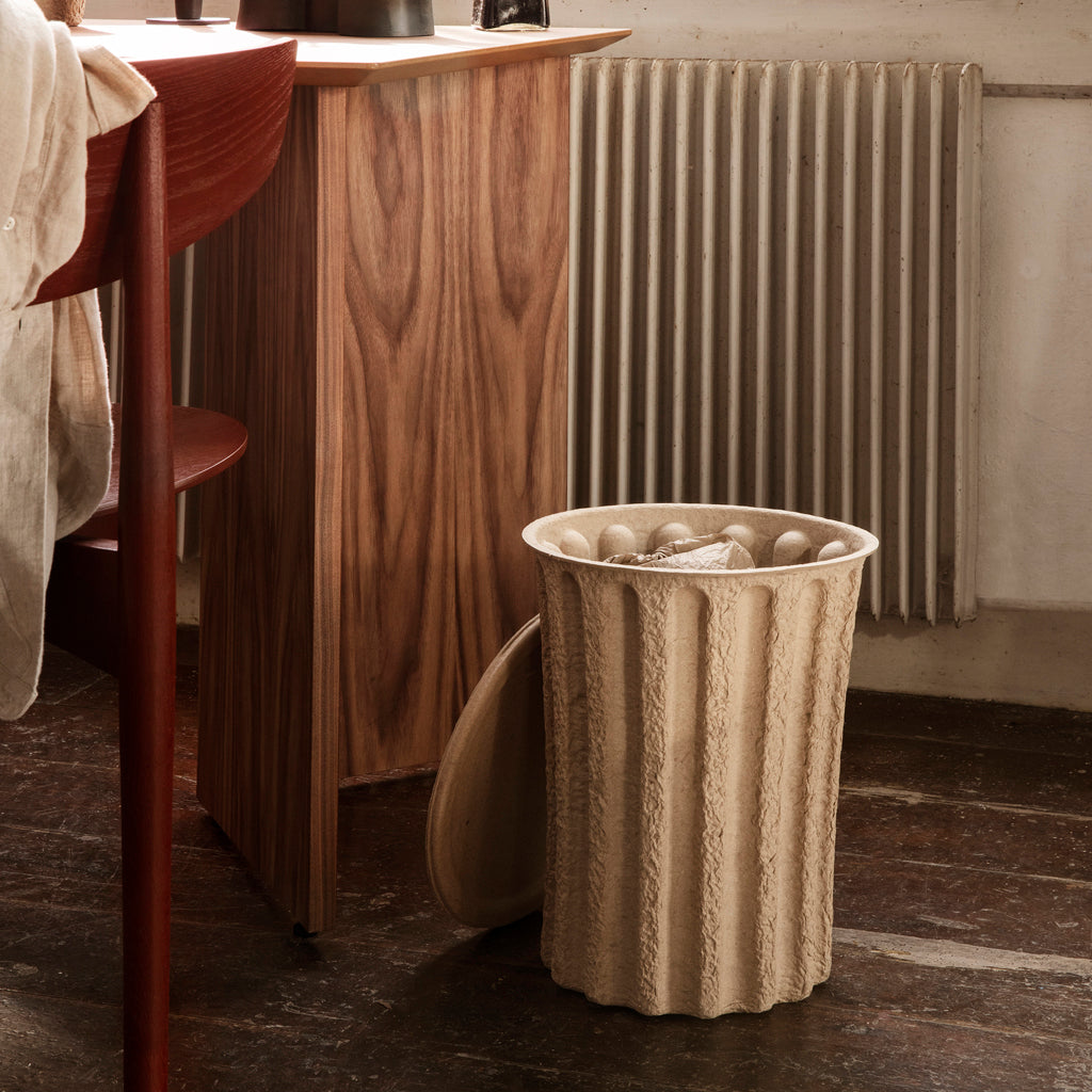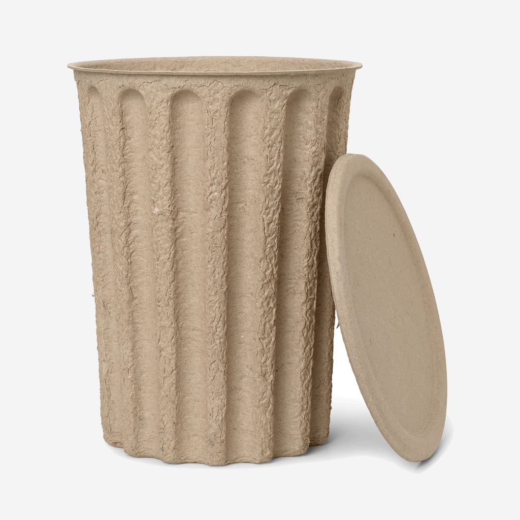 Made from raw, 100% recycled and biodegradable paper pulp, this lidded cylindrical container gives you a handy, lightweight and stackable storage solution. We call it a paper bin, but you can just as easily use it as a storage solution for rolls of wall and wrapping paper or other items.