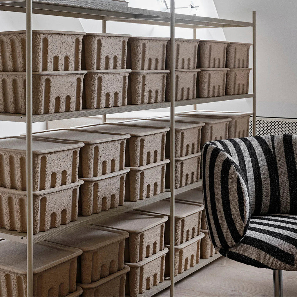 Made from 100% recycled paper pulp, this lidded box gives you a handy, lightweight and stackable storage solution. The durable and biodegradable boxes offer a safe space to store accessories, bring order to your home office or keep smaller bricks and toys in the kids' room tidy.