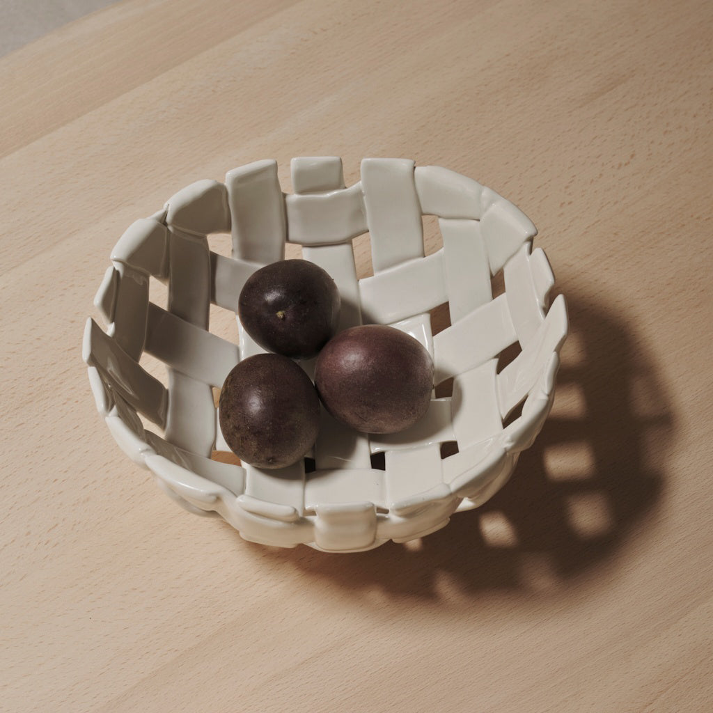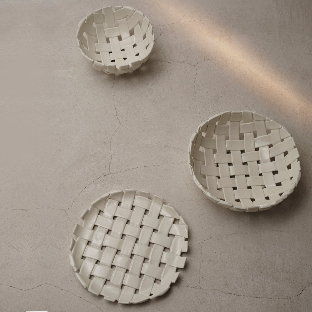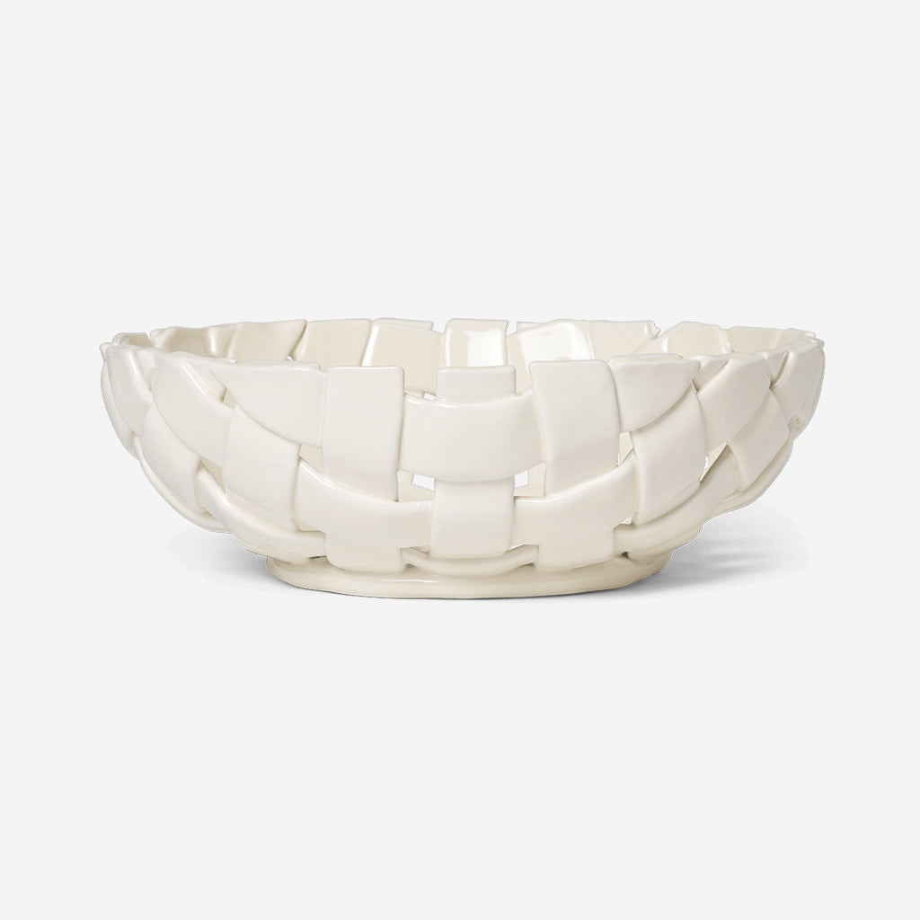 Drawing inspiration from traditional basket weaving techniques, the Plait Bowl is a refined hand-braided ceramic masterpiece. Each bowl is meticulously sculpted by hand, resulting in a uniquely artful and deliberately uneven piece, ensuring that no two are exactly alike. The Plait Bowl is perfect for displaying fresh fruit or bread, offering both functionality and an artistic touch to your kitchen or dining area. Its elegant design and craftsmanship make it an exquisite addition to any home.