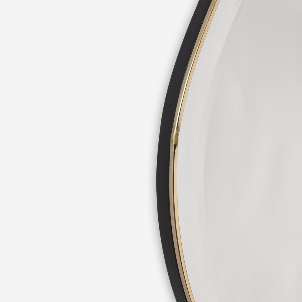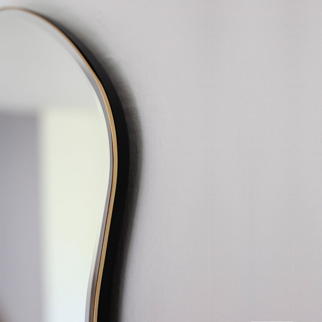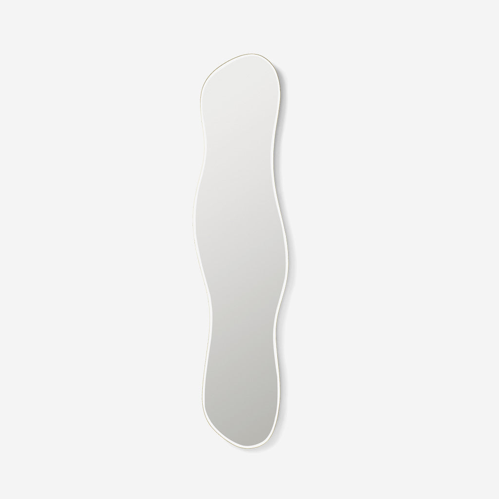 Inspired by free-flowing movements of water, the mirror invites open and fluid forms into your home, turning the functional mirror into a decorative wall piece. Extending the possibilities of the Pond Mirror's iconic silhouette, this large, full-size mirror guarantees a full-body reflection, which is ideal for bedrooms, hallways, or any area requiring a complete view. Please note: the mirror does have a small welding point where the brass frame is welded together.