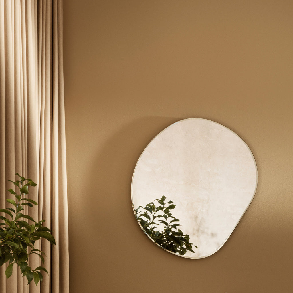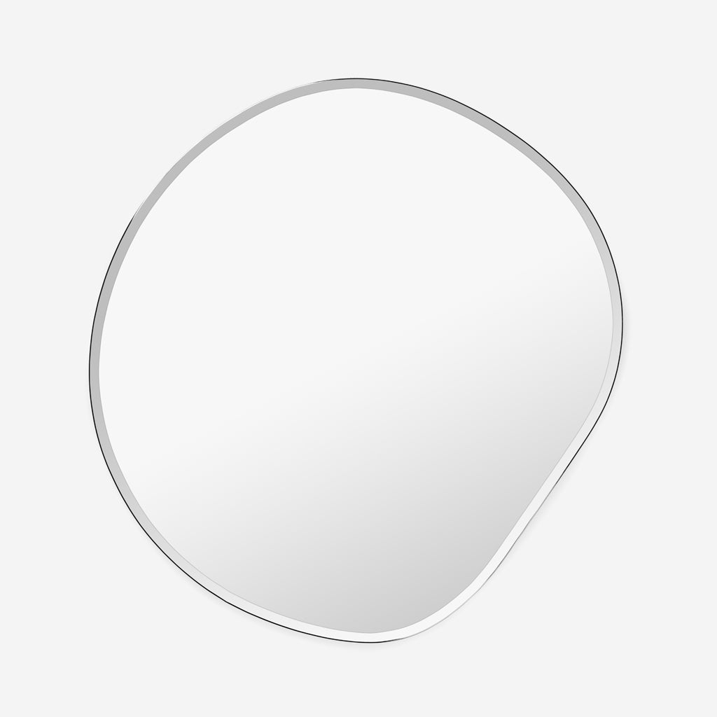 The Pond Series marries form and beauty by using organic shapes, inviting open and fluid forms into your home and turning this functional mirror into a decorative wall piece. The curved edges are held by a slim, metal frame, and can be hung in any direction so that you can find the perfect fit for your space.