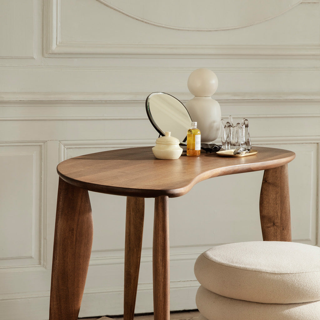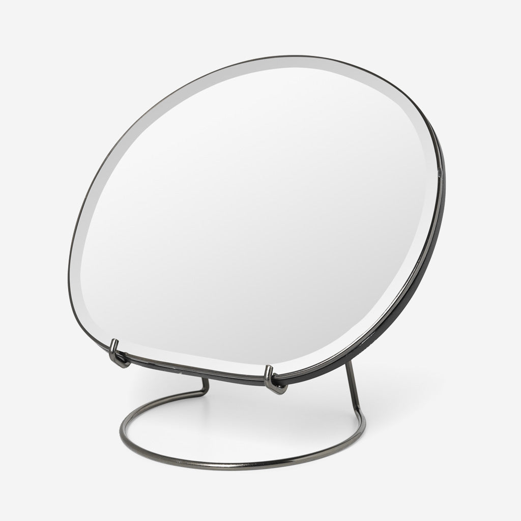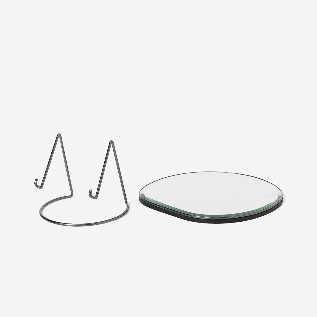 Set on a slender, detachable metal stand, our shape-shifting Pond mirror is cut in an asymmetrical silhouette for an intriguing take on a classic design. Inspired by free-flowing movements of water, the organically-shaped mirror is made to sit on any surface – from a bedroom dressing table or hallway console to a bathroom shelf – it is an elegant way to reflect your daily routine. Mirror is detachable from stand.