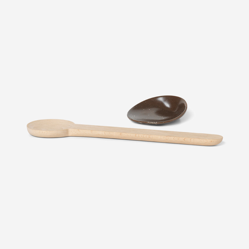 Materials : FSC Certified beech wood spoon + glazed porcelain plate
