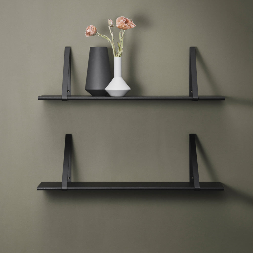 This wooden piece is the base of your beautiful new shelf. Pick your favourite combination of wood shelf and shelf brackets to get a uniquely personalised rack. The shelf is in black stained Oak veneer and will look great in any room of your home.