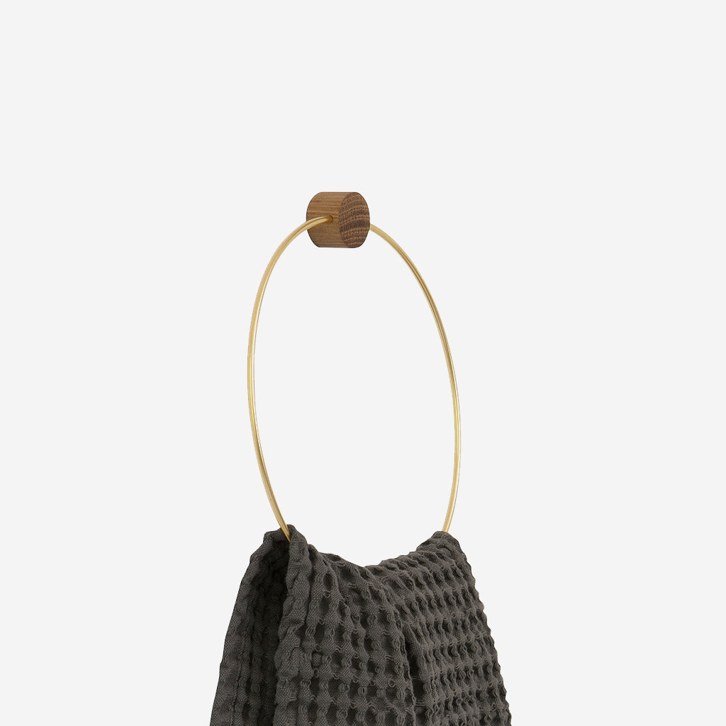 Ferm Living's towel hanger combines simple elegance and minimalist aesthetics with functionality. Made of oak and brass, the stylish towel hanger is suitable across various interior bathroom and kitchen styles. Mounted with screws into the wall.