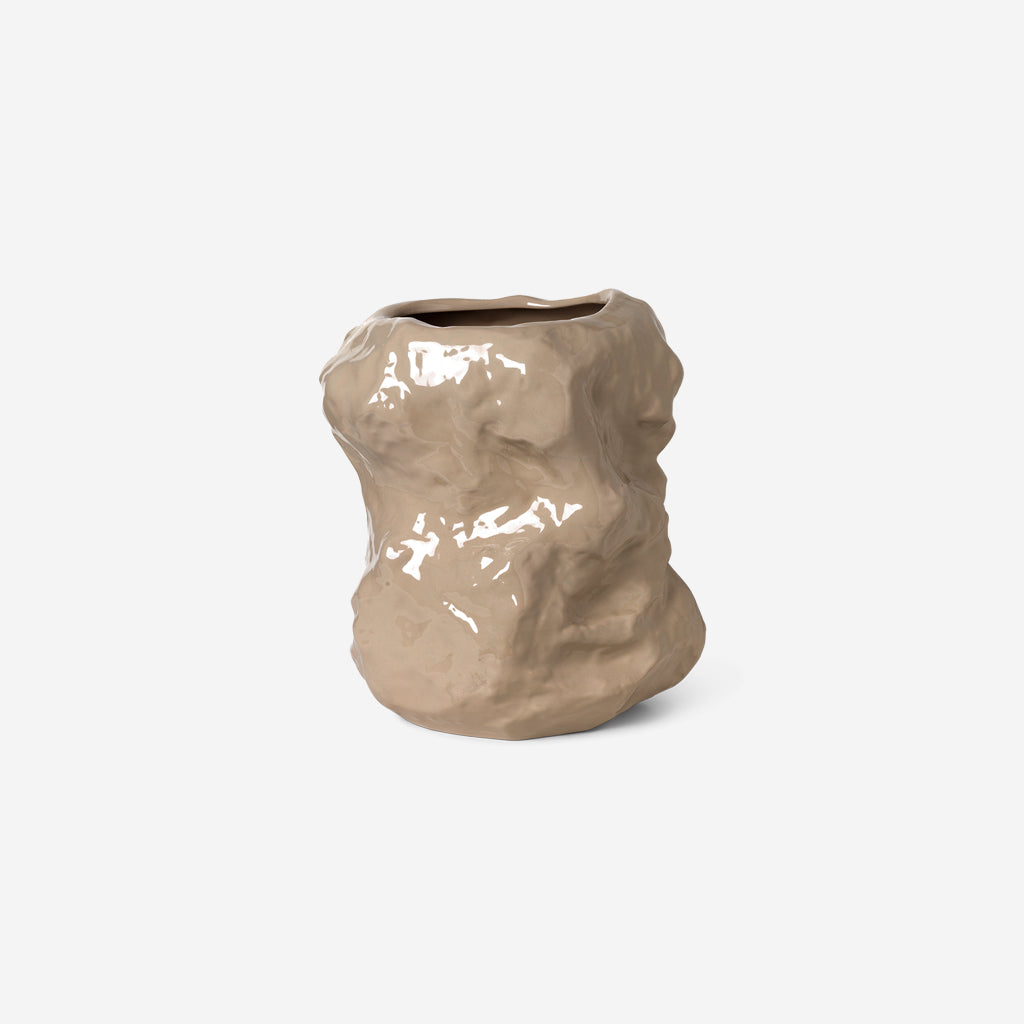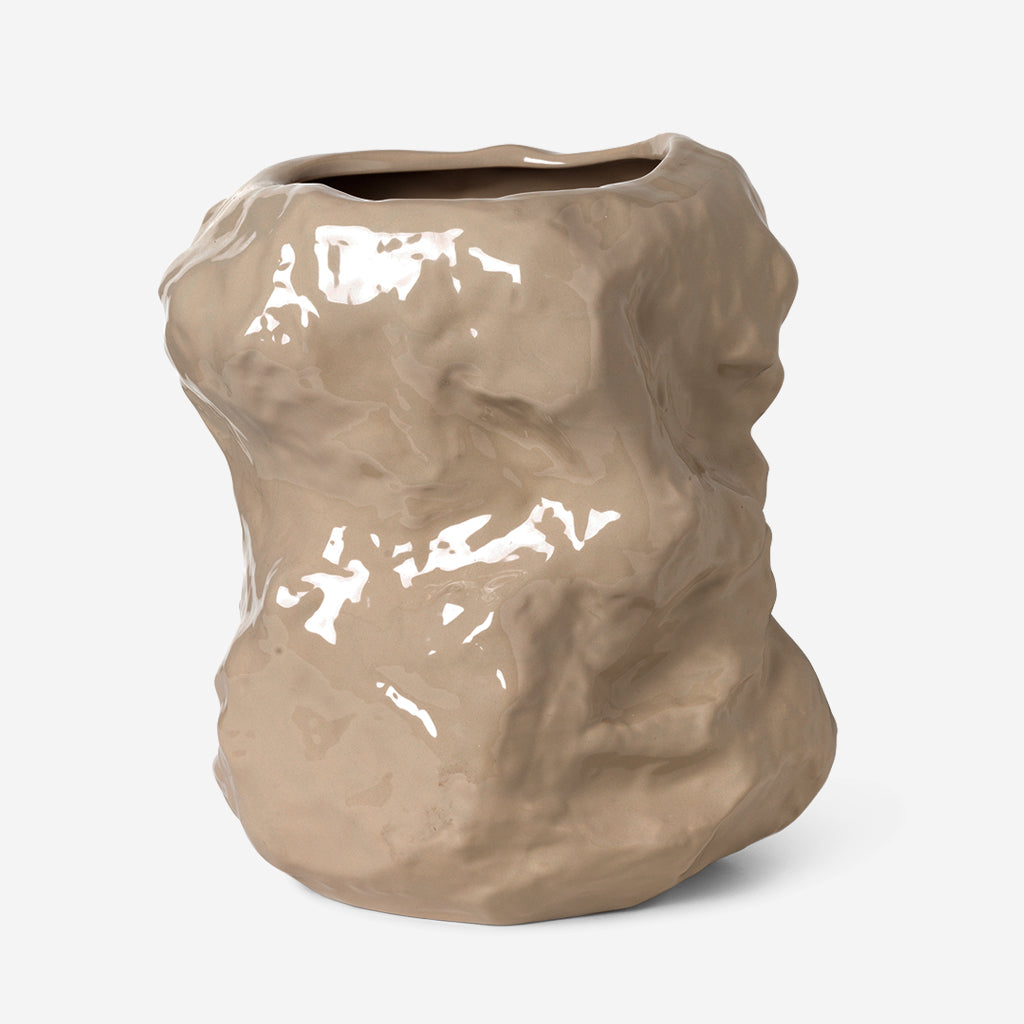 Originally shaped by hand, our Tuck Vase strikes the perfect balance between purposeful and powerful. The artistic piece is layered with a high-shine glaze in a creamy cashmere colour for a light-reflecting finish that highlights its furrowed surface. Fill it with flowers or branches or let it make a solo statement on a surface in your home.