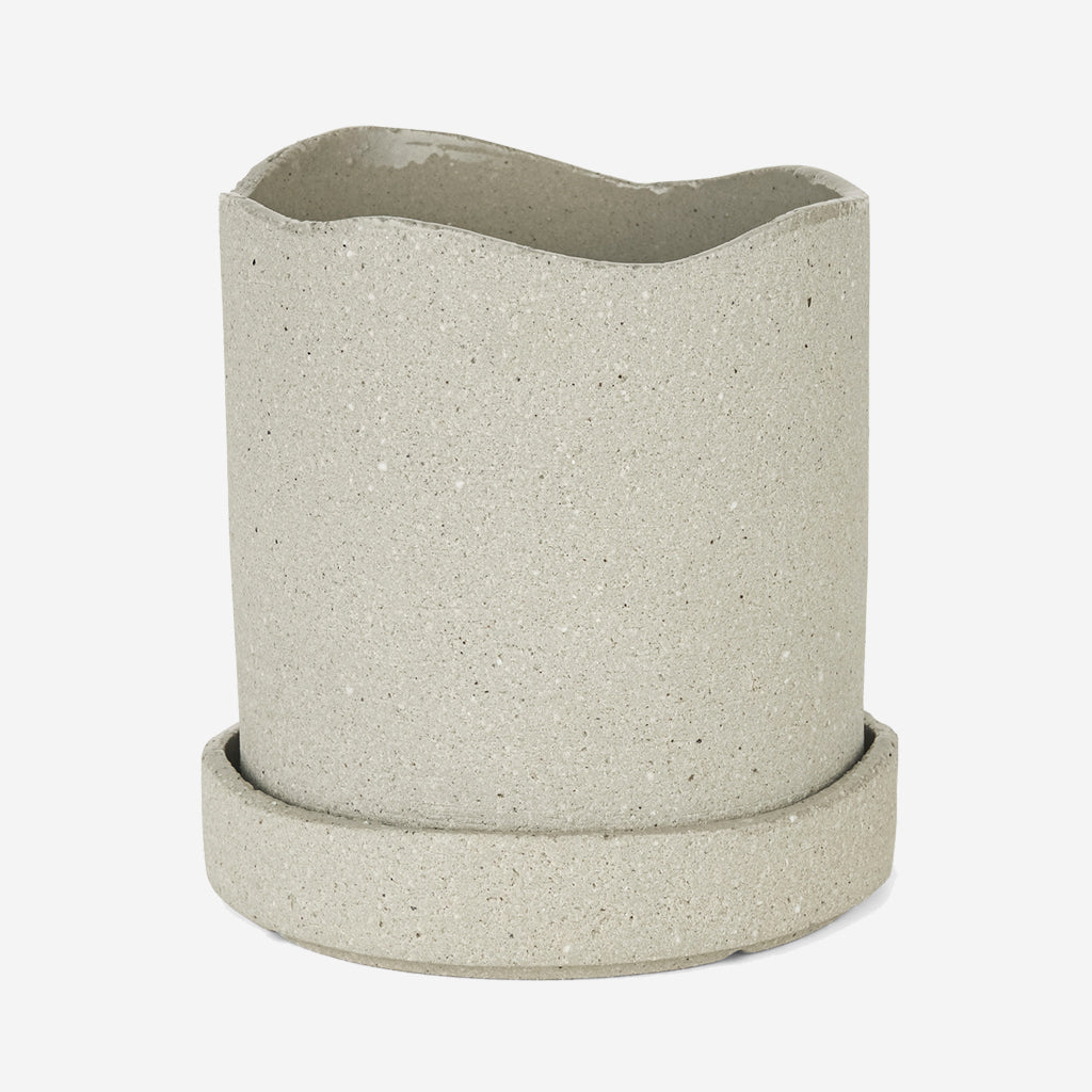 Featuring an unglazed, rough outer surface and an artfully uneven edge, the Uneru Pot and matching saucer will provide any space with a warm, tactile expression. Made from 30-40% recycled clay, the inside of the pot has been glazed, making it the ideal home for your favourite plants.